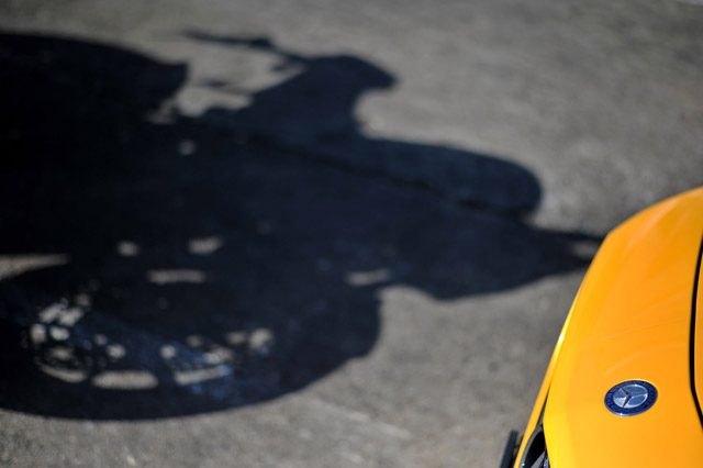 Tuż po targach w nasze ręce trafił elektryzujący tandem: jedyny na świecie egzemplarz samochodu Mercedes-Benz SLK 55 AMG w kolorze Fighter Yellow oraz identycznie lakierowane Ducati Streetfigter 848 – tegoroczna nowość koncernu z Bolonii.