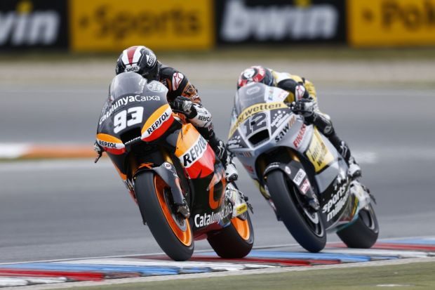 Wyścig klasy Moto2, w której wszyscy startujący używają silników z modelu Honda CBR600RR, wygrał lider tabeli, Marc Marquez, który za rok zastąpi Stonera w ekipie Repsol Honda w MotoGP. Hiszpan o włos wyprzedził innego byłego mistrza świata kategorii 125, Szwajcara Thomasa Luthi. Podium uzupełnił wicelider tabeli, Pol Espargaro.