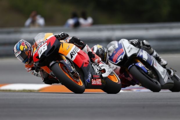 Dosiadający modelu Honda RC213V, Pedrosa był najszybszy we wszystkich trzech treningach wolnych i po starcie z trzeciej pozycji, komfortowo jechał na drugim miejscu, czekając na odpowiednią okazję do ataku.