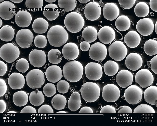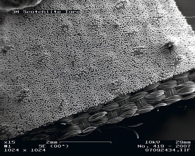 Najpopularniejszym na świecie materiałem odblaskowym jest Scotchlite wynaleziony w 1936 roku przez firmę 3M. Na jego powierzchni umieszczono miliony szklanych kuleczek, które zazwyczaj robi się ze szkła tytanowego. Każdy z tych koralików jest pokryty na połowie powierzchni, stycznej do materiału, specjalną metaliczną warstwą odblaskową, co zapewnia odpowiedni właściwości odbijające światło. Scotchlite wykorzystuje własności refleksyjne (czyli odbijające) szklanych kulek, które zbierają światło z jak największego zakresu padania i wysyłają je z powrotem w jednej wzmocnionej wiązce zbieżnej z linią wzroku. Dlatego niezależnie gdzie stoimy, patrząc na materiał odblaskowy, będzie on tak samo widoczny. Aby zapobiec gromadzeniu się zabrudzeń na powierzchni kulek, co zmniejszyłoby efektywność odbicia, folie dzieli się na małe komórki pokryte z wierzchu warstwą zabezpieczającą, pod którą są koraliki. Materiału odblaskowego używa się także od produkcji ekranów projekcyjnych w kinach do oznaczania jezdni i znaków drogowych oraz jako wstawki w odzieży odblaskowej.