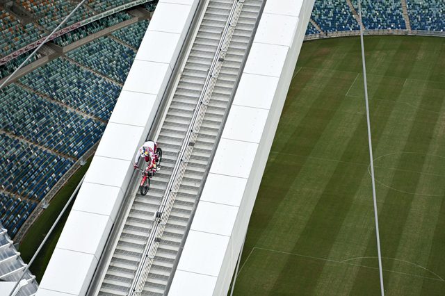 Częścią stadionu wybudowanego na Mistrzostwa Świata w Piłce Nożnej 2010 jest długi na 350 metrów i wysoki na 106 metrów łuk. Na jego szczyt prowadzi 550 stopni…ta konstrukcja od dłuższego czasu stanowiła wyzwanie dla Cappera. Capper przejechał na swoim motocyklu trialowym 2012 Beta Evo 300 po największym na świecie łuku. Ważący 65 kg motocykl idealnie […]