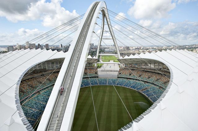 Częścią stadionu wybudowanego na Mistrzostwa Świata w Piłce Nożnej 2010 jest długi na 350 metrów i wysoki na 106 metrów łuk. Na jego szczyt prowadzi 550 stopni…ta konstrukcja od dłuższego czasu stanowiła wyzwanie dla Cappera.