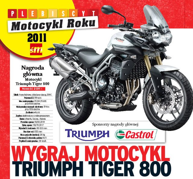 Dla uczestników głosowania przygotowaliśmy konkurs na najciekawsze hasło reklamujące „Świat Motocykli”. Główną nagrodą był motocykl marki Triumph Tiger 800.