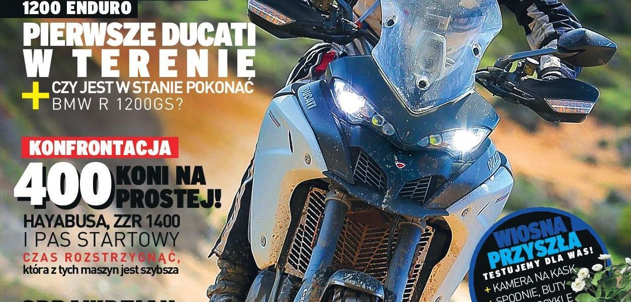 A co znajdziecie w najnowszym numerze? Między innymi: premierowy test Ducati Multistrada Enduro, wielkie porównanie Suzuki Hayabusa vs Kawasaki ZZR 1400 i test elektryzującej MV Agusty 800 Dragster!!! Ale to nie wszystko. Będzie też wywiad z Polakiem, który ścigał się w słynnym TT na Wyspie Man, wszystko o używanym Suzuki DR Big i klasyka, czyli Darek Dobosz w prosty sposób o trudnych zagadnieniach technicznych. Poza tym turystyka (bliska i daleka), coś o stodwudziestkachpiątkach, odrobina historii, porad, relacji i aktualności.