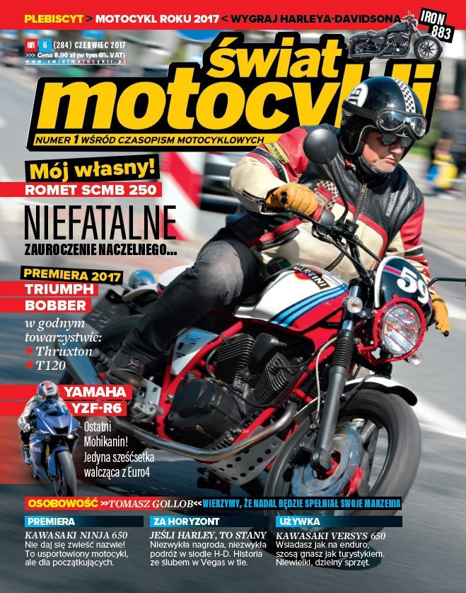Oj nie rozpieszcza nas tegoroczna wiosna! Owszem, było kilka dni, kiedy chciało się „polatać na bajku” i od razu odnotowały ten fakt raporty policyjne, szpitale oraz żądne sensacji media. Jednak zaraz potem nastąpiły opady śniegu, gradu, a pewnie gdzieniegdzie i żab, które spowodowały, że entuzjazm motocyklistów wyraźnie osłabł. Jak wykazały statystyki nie tylko do jazdy, ale także do zakupów, bo słabo też wyglądała sprzedaż nowych jednośladów w pierwszych miesiącach roku. Chociaż przynajmniej z używkami nie jest źle, bo zainteresowanie nimi rośnie sukcesywnie. Patrząc jednak z drugiej strony, wzmożone zainteresowanie maszynami z drugiej ręki nie świadczy najlepiej o finansowej kondycji naszych motocyklistów. Z myślą o tych nieco mniej zamożnych przygotowaliśmy test motocykla niezbyt drogiego, ale dosyć spektakularnego. Raczej nie ceną, ale z pewnością wyglądem Romet SCMB 250 aspiruje do klasy premium. Jeżeli więc nie osiągi maszyny, a jej styl jest dla was ważny, warto przyjrzeć się scramblerowi. Tym, którzy dysponują zdecydowanie grubszym portfelem, ale również kochają klasyki, przedstawiamy całą rodzinę nowych Triumphów Bonneville, w której każdy znajdzie coś dla siebie. Jeżeli jednak nie gustujecie w ponadczasowym pięknie motocykli wueskopodobnych, z pewnością zainteresują Was testy nowego Kawasaki Ninja 650 czy gorąca premiera Yamahy R6, którą Simpson poskromił na hiszpańskim torze Circuit de Almeria. Niestety, europejskie normy po raz kolejny kastrują moc silnika, ale cieszmy się tym, co mamy, bo jeśli tak dalej pójdzie, to w niedługiej przyszłości UE będzie dopuszczała jedynie motocykle elektryczne.
