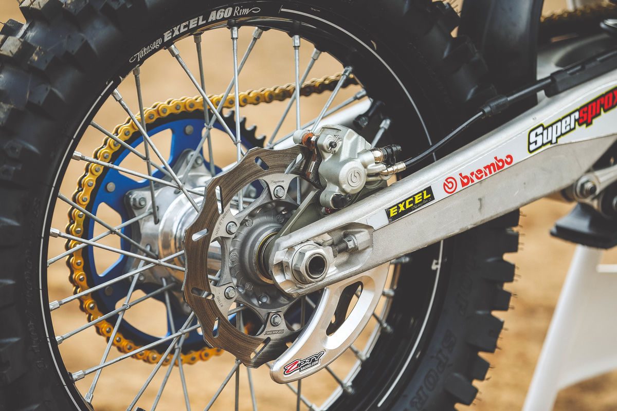 Obręcze wyprodukował EXCEL, jest to model A60. Obuto je w opony Dunlop MX 52, które wypełniają Tire Balls (kulki silikonowe, które wypełnia się powietrzem, więcej informacji o nich znajdziecie w nowym numerze ŚM 3/2017).