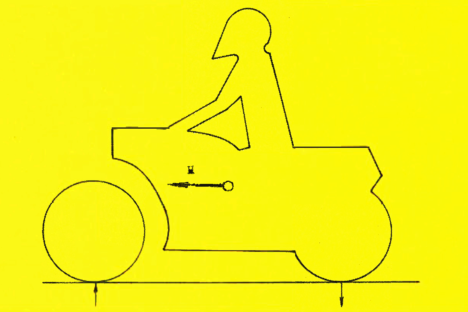 Siła hamowania „Hp”, działająca na poziomy wahacz, nie bierze udziału w oddziaływaniu na sprężyny, dopóki wahacz pozostaje poziomy. Ten system wahacza miałem okazję osobiście sprawdzić, zarówno w dużej BMW R50, jak i w małym Zundapie 250, i muszę powiedzieć, że przy prawidłowym rozłożeniu sił hamowania przód/tył zawieszenie zachowuje poziomą pozycję wahacza. Gdyby to było jedynym kryterium działania systemu, to byłoby wszystko w porządku. Ale nie jest jedynym. To już było omówione przy okazji sterowności.