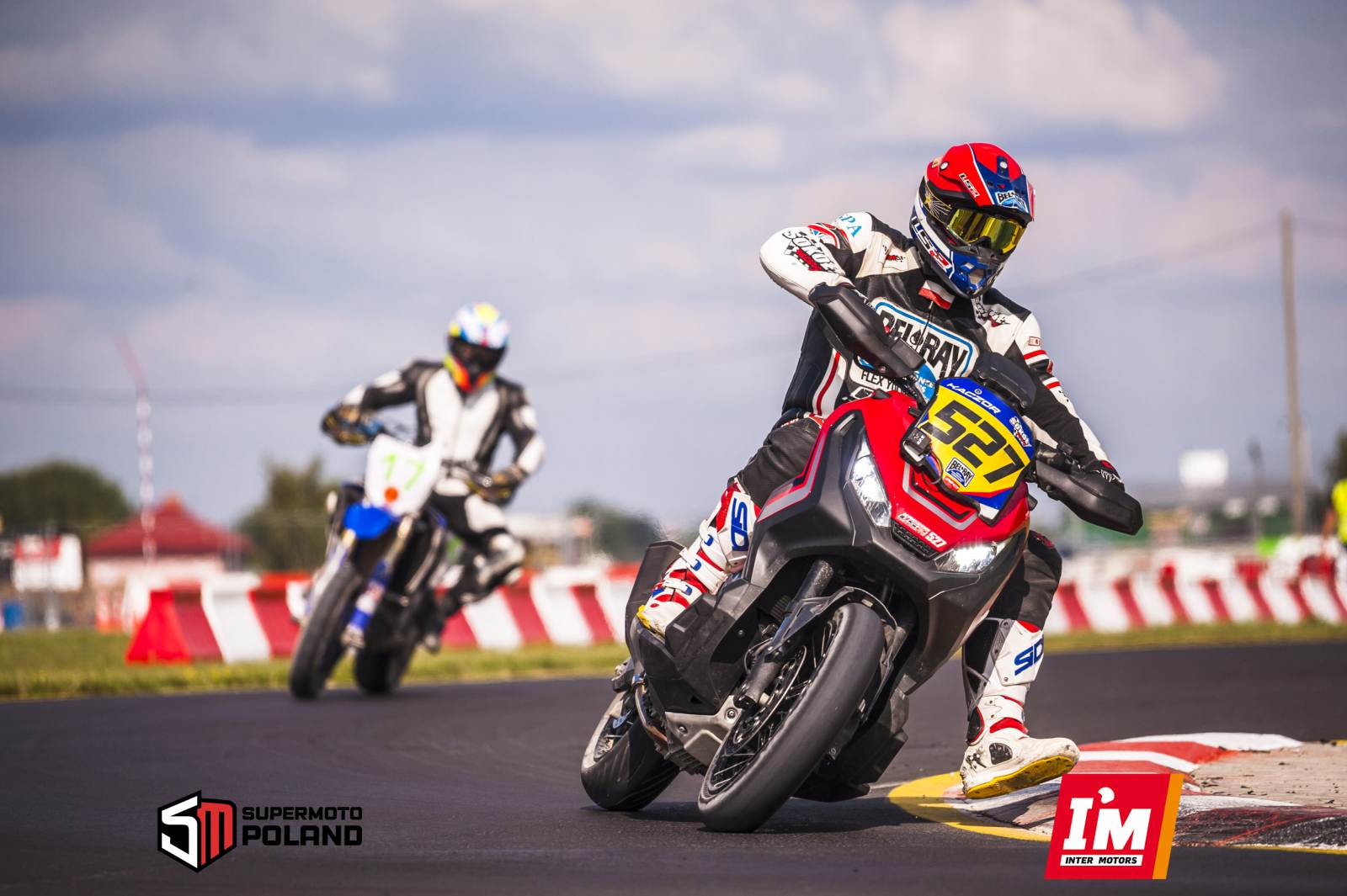 Mistrzostwa Polski supermoto w Słomczynie były najlepszą imprezą tego typu w sezonie 2019. Zawody zorganizowano z rozmachem, a atrakcyjne nagrody przyciągnęły zawodników z krajów ościennych. Nie tylko oni byli zaskoczeni widokiem terenowego skutera na stojakach z założonymi kocami grzewczymi. Niemały zgryz miała zachowawcza na początku komisja techniczna, która nie chciała dopuścić do startu X-ADV-a. Piotrek kilka dni wcześniej jak nigdy dokładnie przestudiował regulamin. Wiedział, że start w pucharze czy mistrzostwach Polski może być utrudniony, ponieważ regulamin przewiduje, że motocykle mają być jednocylindrowe.