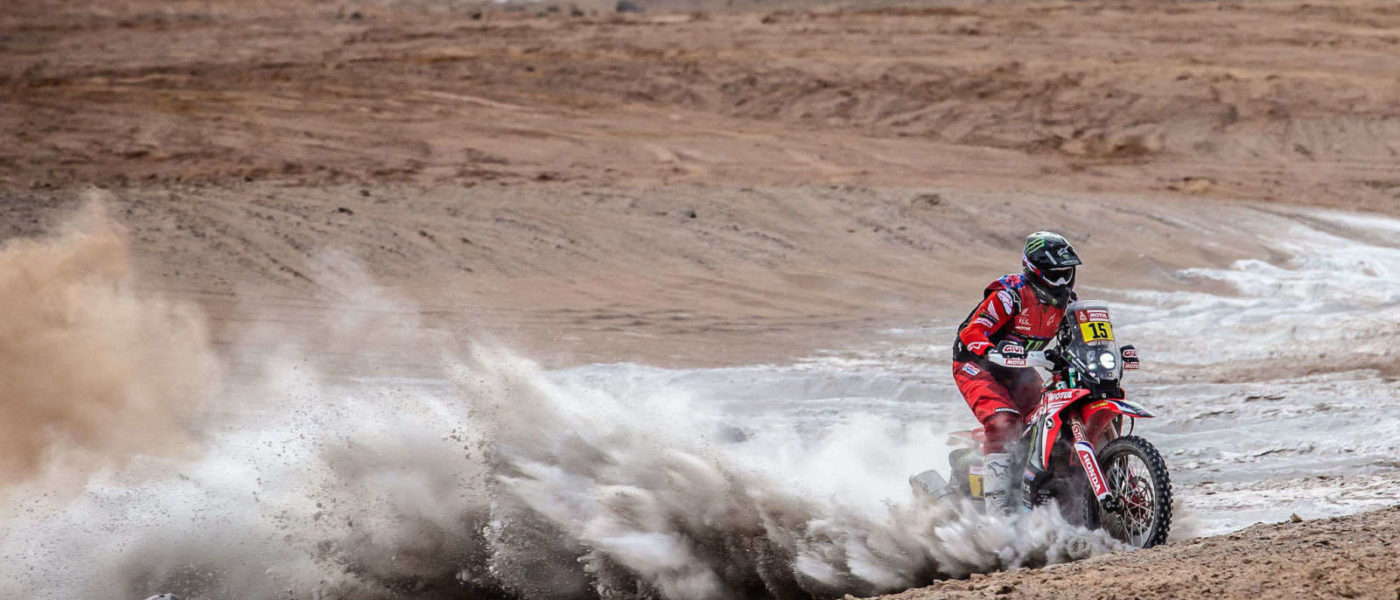 Jeżeli uważnie oglądaliście tegoroczną edycję Rajdu Dakar to zdecydowanie nie trzeba wam przedstawiać Rickiego Brabeca. Amerykanin jadący w zespole Hondy miał potężne szanse na zwycięstwo, kiedy na 8. etapie silnik w jego CRF 450 nie wytrzymał i Ricky musiał wycofać się z dalszej jazdy. To nie zmienia jednak faktu, że Brabec wie jak się trzyma gaz i jeździ pełnym ogniem po pustyni.