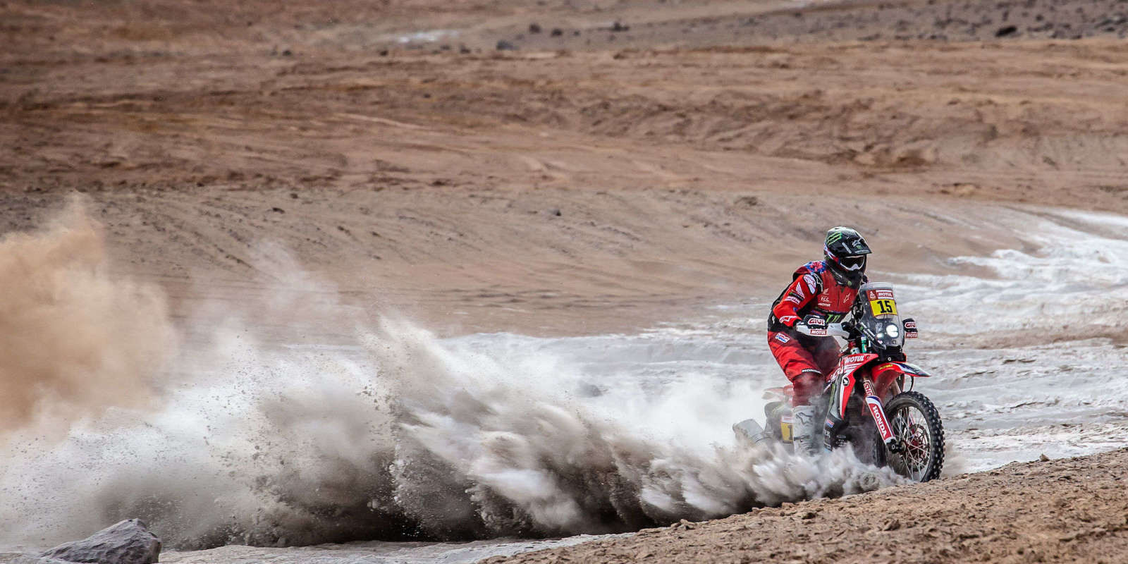 Jeżeli uważnie oglądaliście tegoroczną edycję Rajdu Dakar to zdecydowanie nie trzeba wam przedstawiać Rickiego Brabeca. Amerykanin jadący w zespole Hondy miał potężne szanse na zwycięstwo, kiedy na 8. etapie silnik w jego CRF 450 nie wytrzymał i Ricky musiał wycofać się z dalszej jazdy. To nie zmienia jednak faktu, że Brabec wie jak się trzyma gaz i jeździ pełnym ogniem po pustyni.