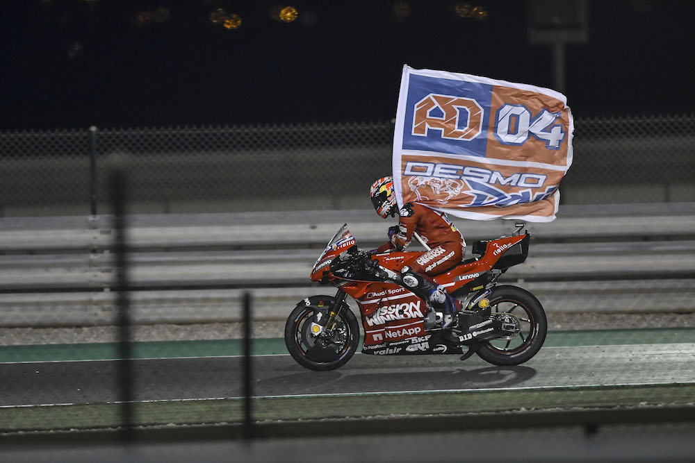 Dosiadający modelu Desmosedici GP19, Dovizioso swoje dwunaste zwycięstwo w MotoGP na Ducati i piąte z rzędu podium na torze Losail, wywalczył z przewagą 23 tysięcznych sekundy. Po zaciętej walce „Desmo Dovi” pokonał obrońcę tytułu, Hiszpana Marca Marqueza.