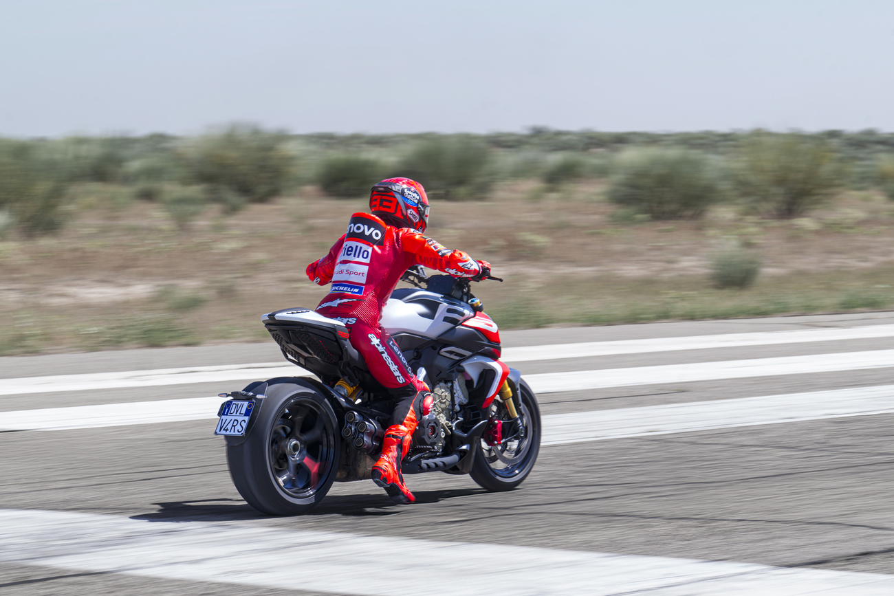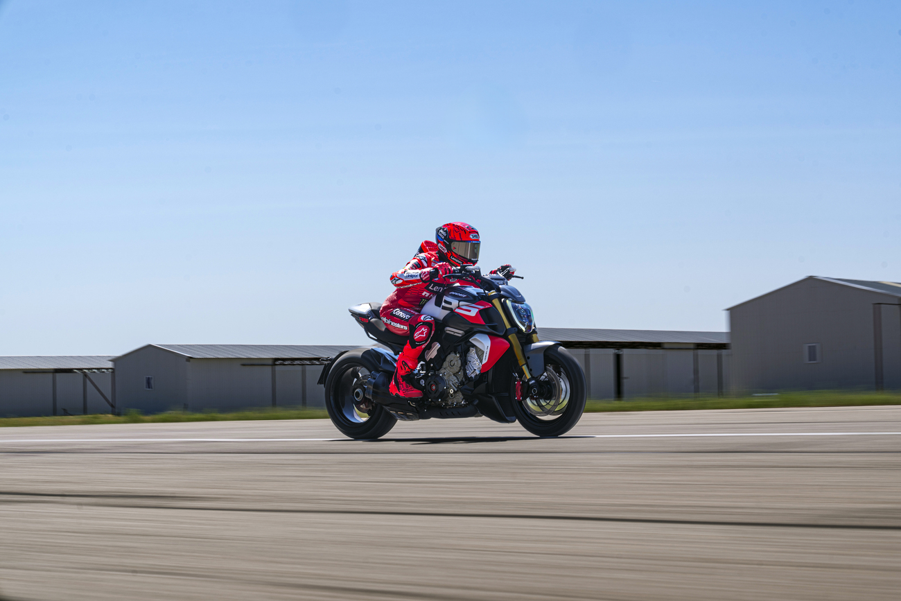 Nazwa Diavel zawsze była synonimem błyskawicznego przyspieszenia. Nowy V4 RS napędzany silnikiem Desmosedici Stradale z przeciwbieżnym wałem korbowym przesuwa granice jeszcze dalej. Diavel V4 RS o mocy 182 koni mechanicznych osiąga przyspieszenia, które do tej pory były nieosiągalne dla motocykli drogowych. Marc Marquez rozpędził Diavela V4 RS do prędkości 100 km/h w zaledwie 2,52 sekundy. To w rzeczywistości najszybciej przyspieszający motocykl produkcyjny Ducati.