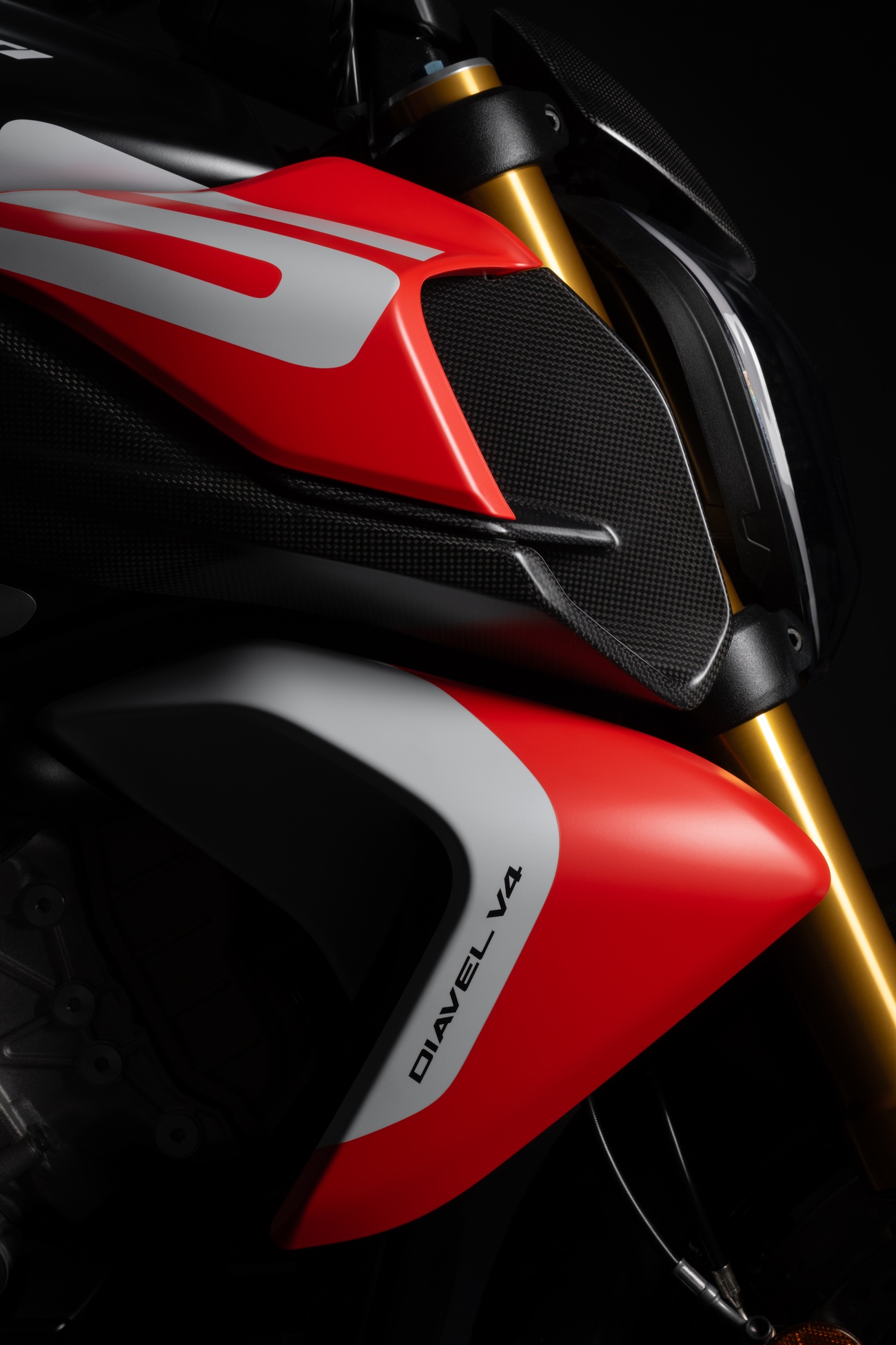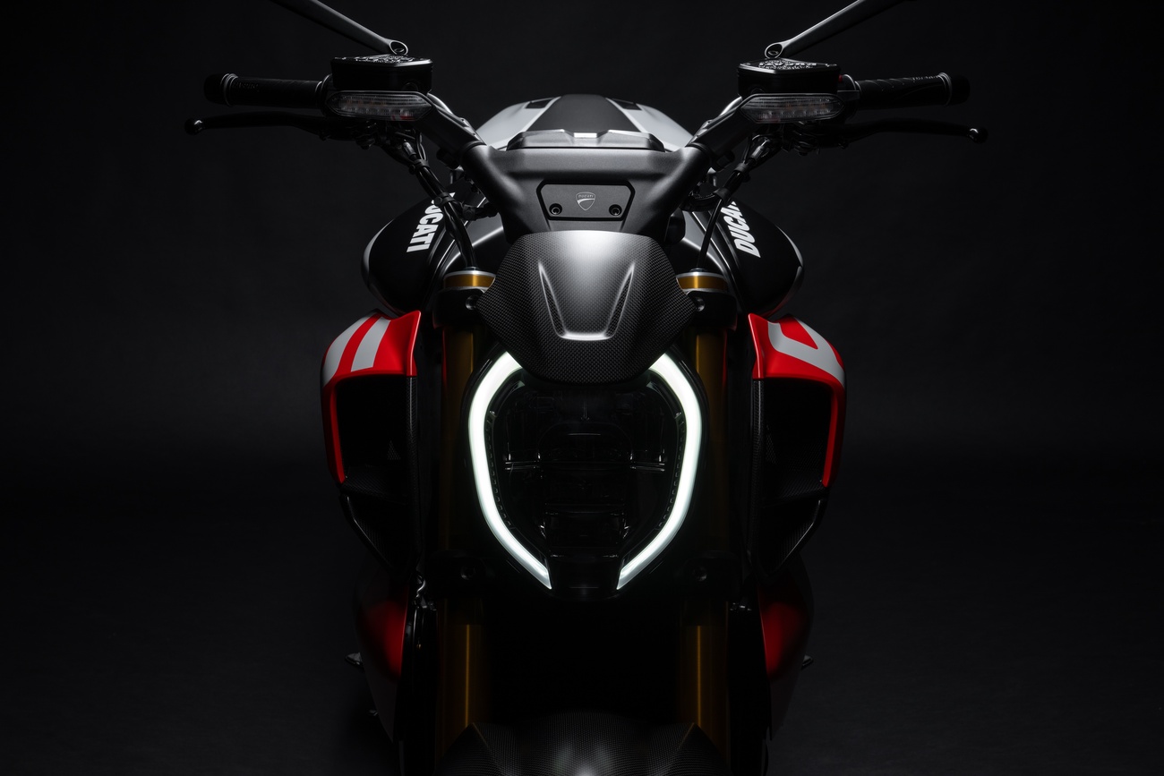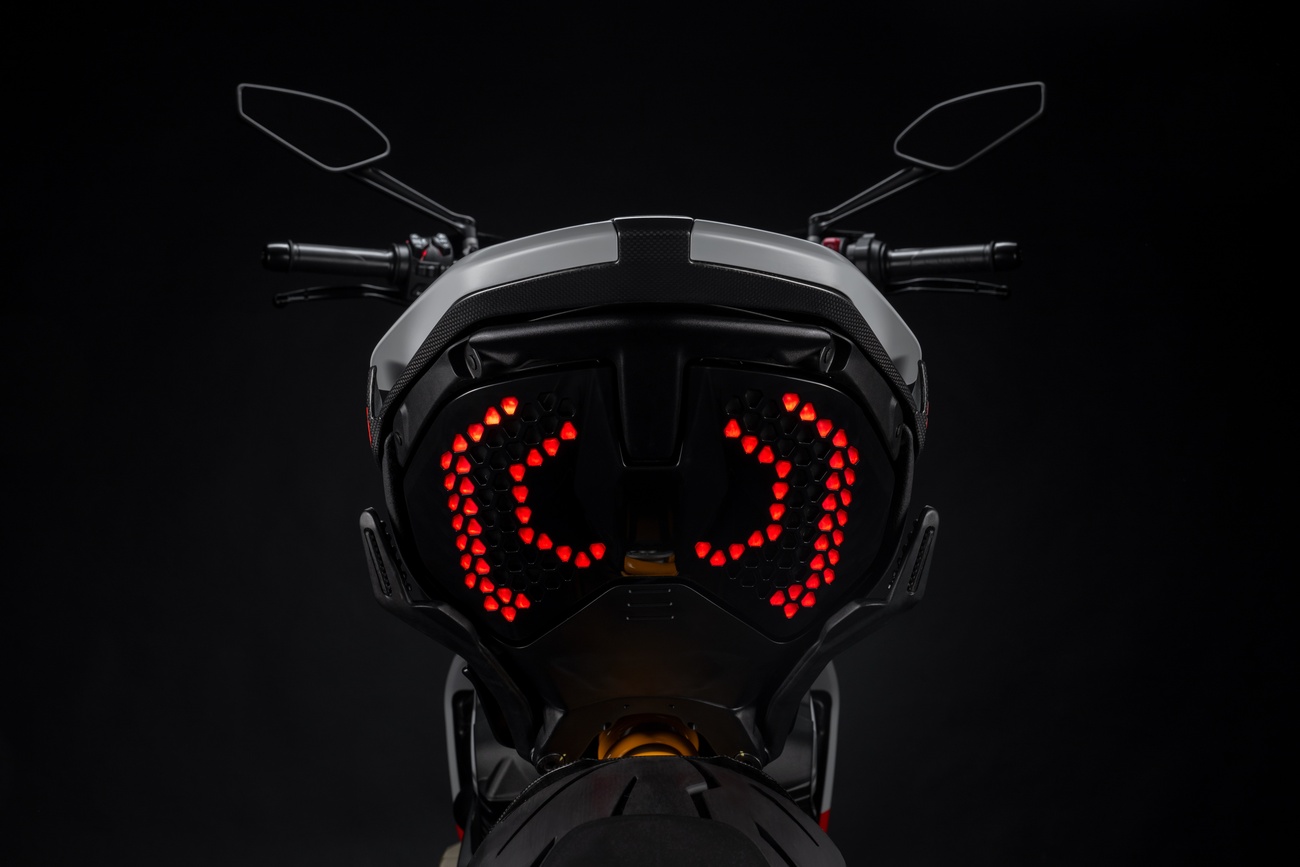 Techniczne i stylistyczne detale czynią Diavela V4 RS unikalnym. Zaprojektowane przez Centro Stile Ducati logo RS pojawia się w dedykowanym malowaniu, na kluczyku, a także w animacji wyświetlanej podczas uruchomienia zapłonu. Diavel V4 RS ma zupełnie nowy design, ale zachował swoją niepowtarzalną tożsamość. Elementy wykonane z włókna węglowego przyczyniają się do jeszcze bardziej wyjątkowego i sportowego wyglądu, redukując wagę motocykla o 3 kilogramy.