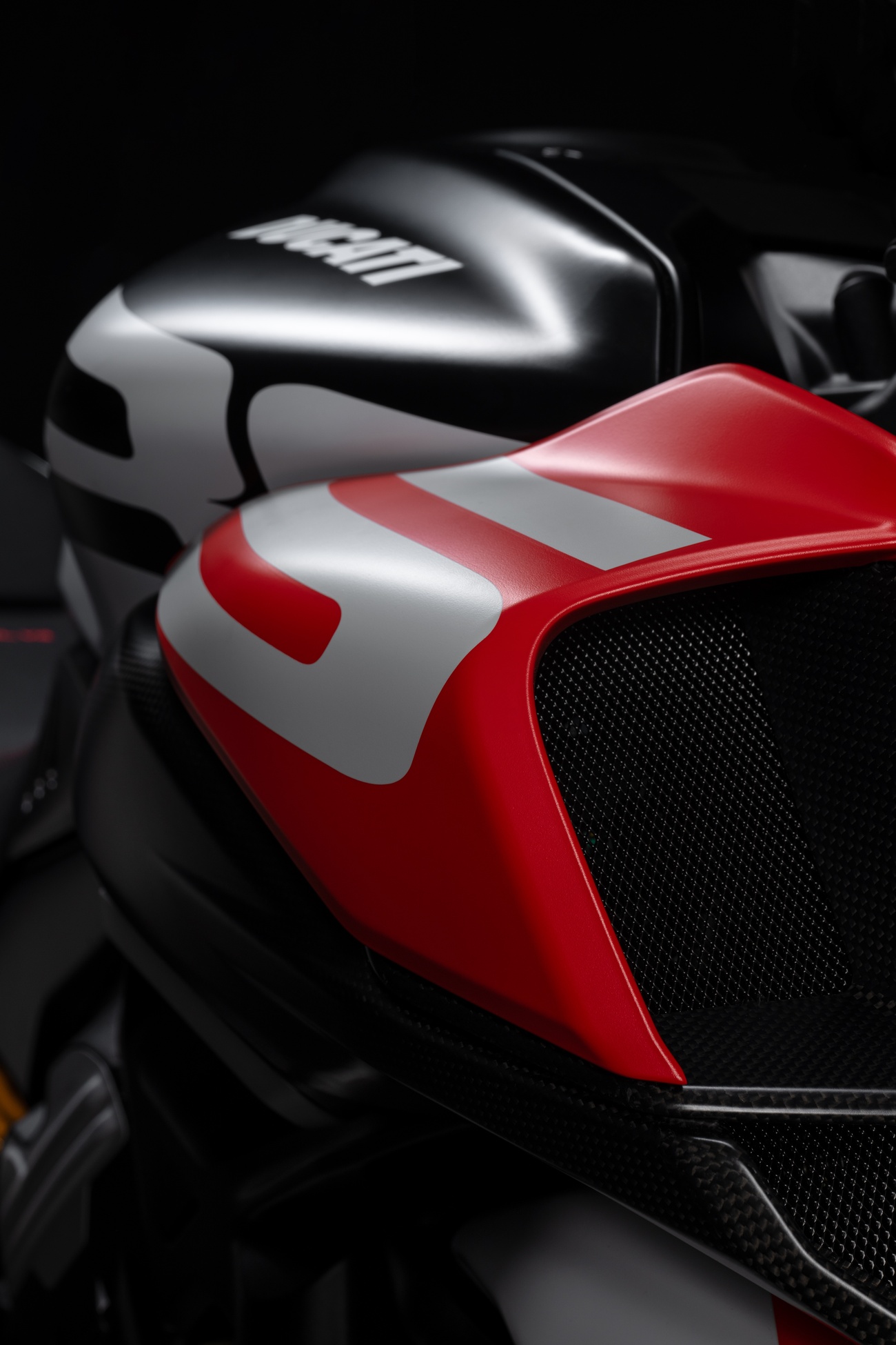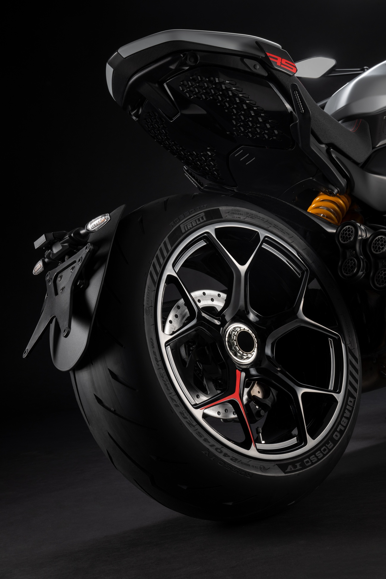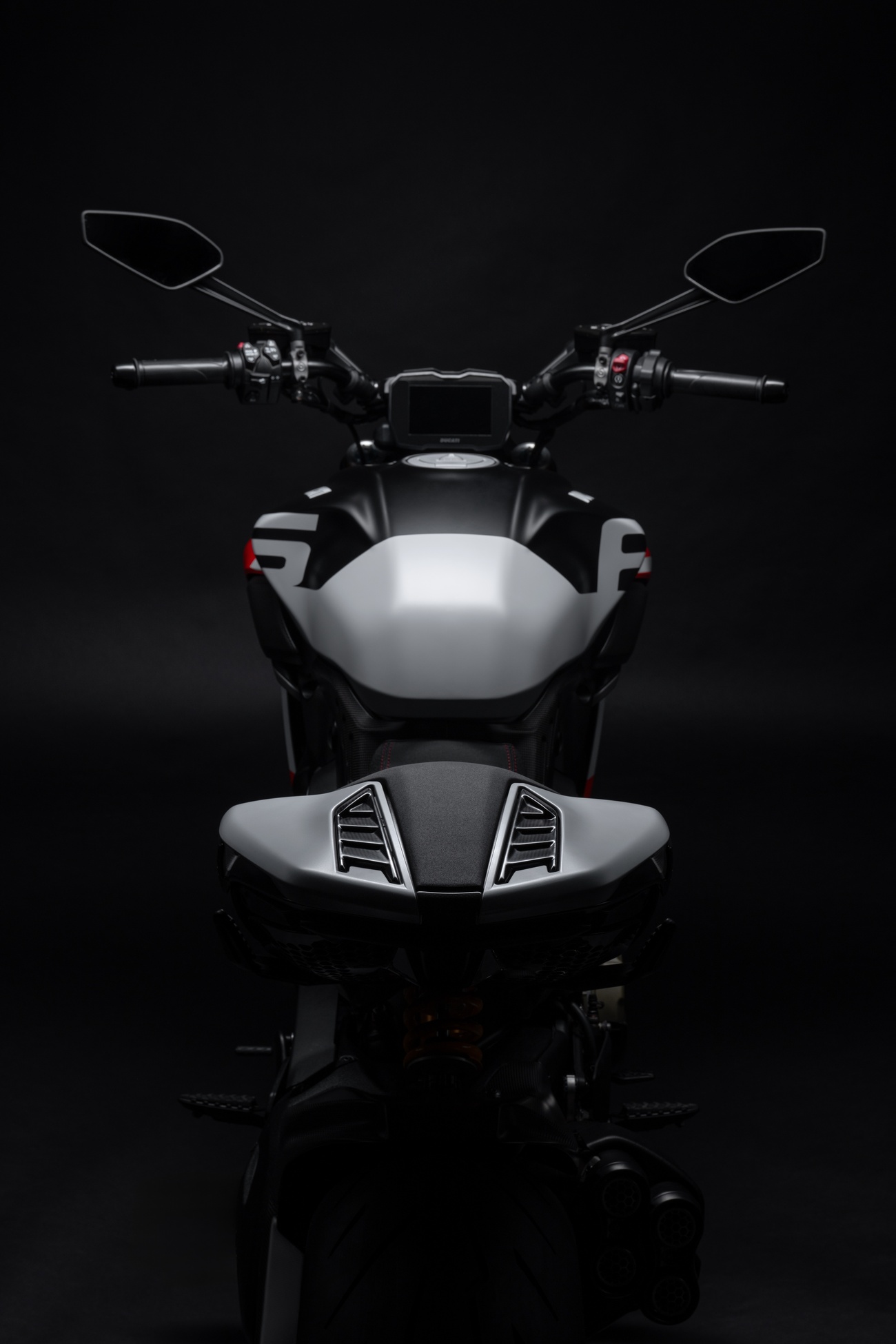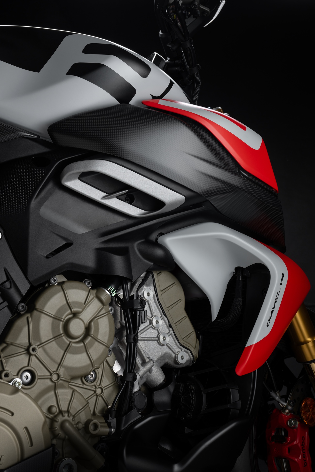 Techniczne i stylistyczne detale czynią Diavela V4 RS unikalnym. Zaprojektowane przez Centro Stile Ducati logo RS pojawia się w dedykowanym malowaniu, na kluczyku, a także w animacji wyświetlanej podczas uruchomienia zapłonu. Diavel V4 RS ma zupełnie nowy design, ale zachował swoją niepowtarzalną tożsamość. Elementy wykonane z włókna węglowego przyczyniają się do jeszcze bardziej wyjątkowego i sportowego wyglądu, redukując wagę motocykla o 3 kilogramy.