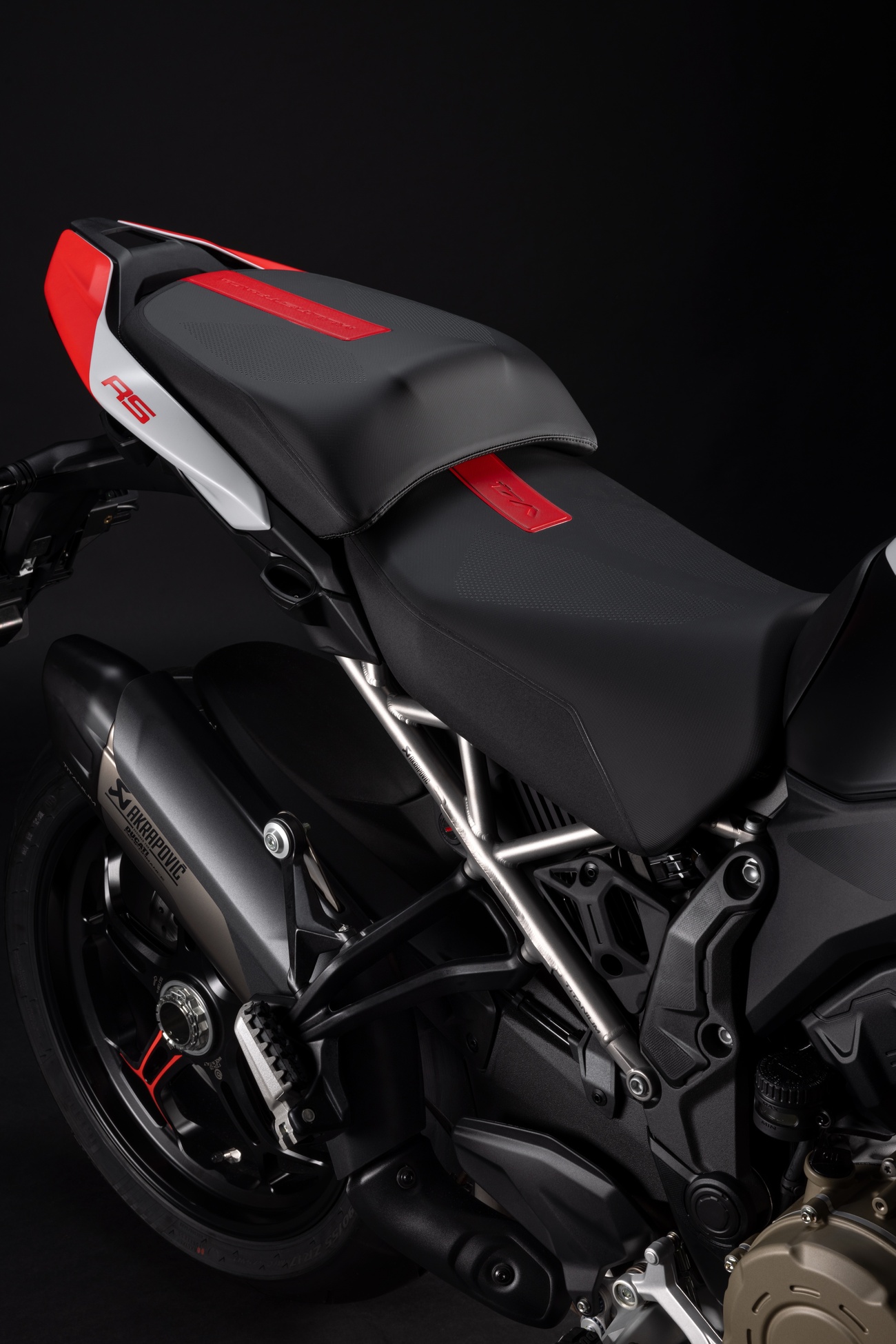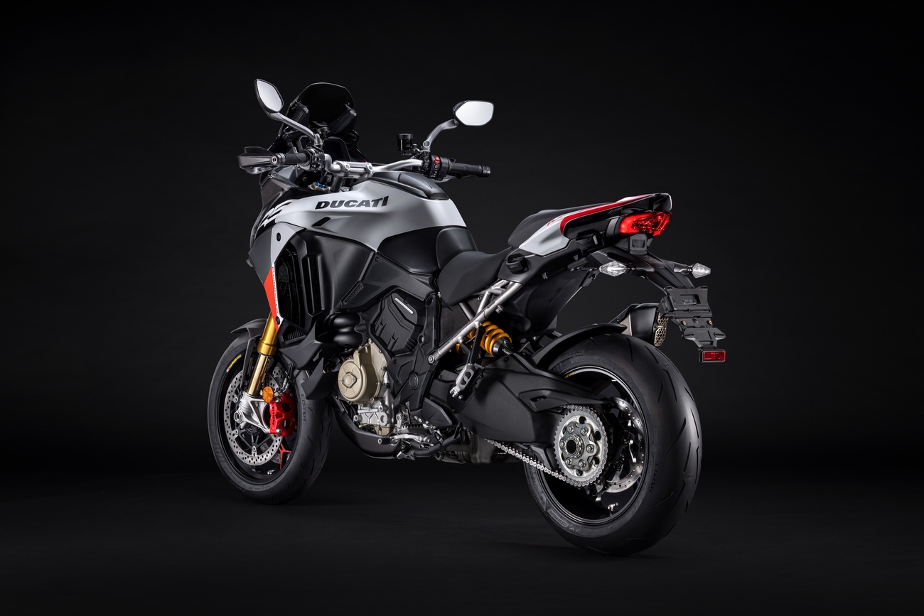 W nowej Multistradzie V4 RS każdy komponent i każdy detal został dobrany z myślą o stworzeniu najbardziej sportowego i ekscytującego motocykla turystycznego w historii. Pakiet elektroniki został zaktualizowany o algorytm Ducati Vehicle Observer, oparty na doświadczeniu Ducati w MotoGP. Podwozie, wyposażone w przedni widelec i amortyzator Öhlins, jest jeszcze bardziej efektywne dzięki nowym strategiom zawieszenia, większej tylnej tarczy o średnicy 280 mm oraz układowi hamulcowemu z systemem Cornering ABS. Ultralekka, tytanowa rama pomocnicza, unikalna na skalę światową, została teraz przystosowana do montażu kufra centralnego.