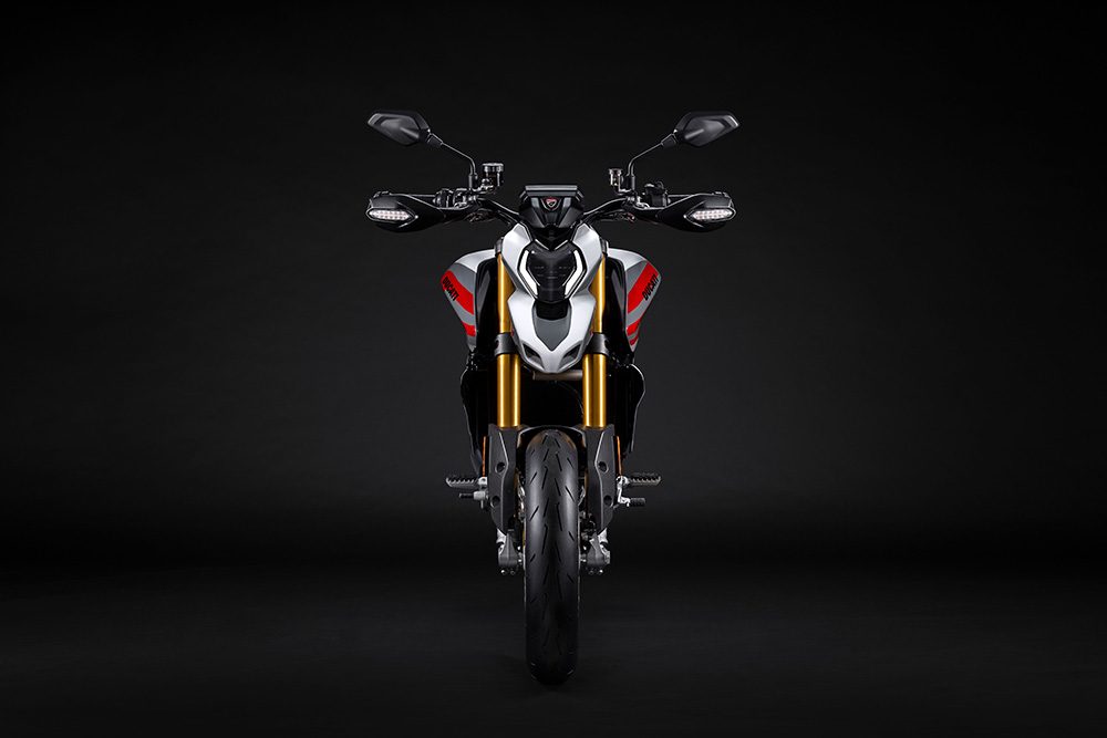 Nowy Hypermotard V2, zainspirowany prototypem z 2005 roku, reinterpretuje jego charakterystyczne cechy, nadając mu współczesny i radykalny charakter. Opływowy przód, kształt zbiornika paliwa i podwójny wydech pod ogonem to stylistyczne nawiązania do pierwszego modelu 1100, dzięki czemu V2 jest natychmiast rozpoznawalny jako Hypermotard. Rezultatem jest nowoczesny i kompaktowy motocykl, który na pierwszy rzut oka emanuje lekkością. Hypermotard V2 i V2 SP to najlżejsze i najmocniejsze Hypermotardy w historii. Dzięki zredukowaniu masy o 13 kg (14 kg w przypadku SP) w porównaniu z poprzednim modelem 950, są zwinniejsze, bardziej responsywne i ekscytujące niż kiedykolwiek wcześniej.