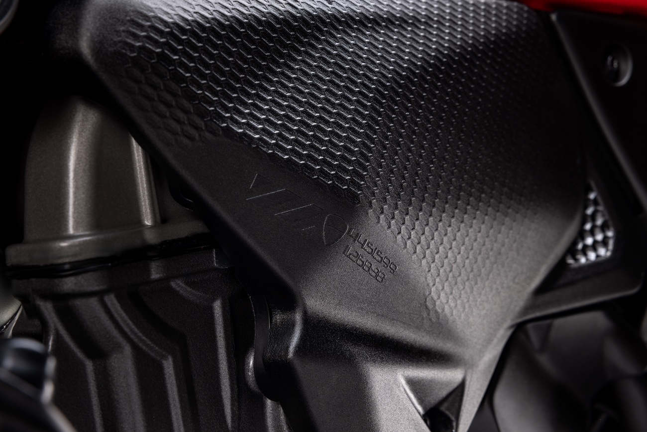 Nowy dwucylindrowy silnik, nowoczesny i charakteryzujący się czystą estetyką dzięki precyzyjnym rozwiązaniom technicznym, to idealna jednostka napędowa dla Monstera. Ten naked bike z Borgo Panigale od zawsze miał silnik V-twin – szlachetny silnik charakteryzujący się smukłą sylwetką, optymalnym rozkładem masy i obniżonymi wibracjami dzięki idealnemu równoważeniu sił pierwszego rzędu – jako jeden ze swoich technicznych i stylistycznych filarów.