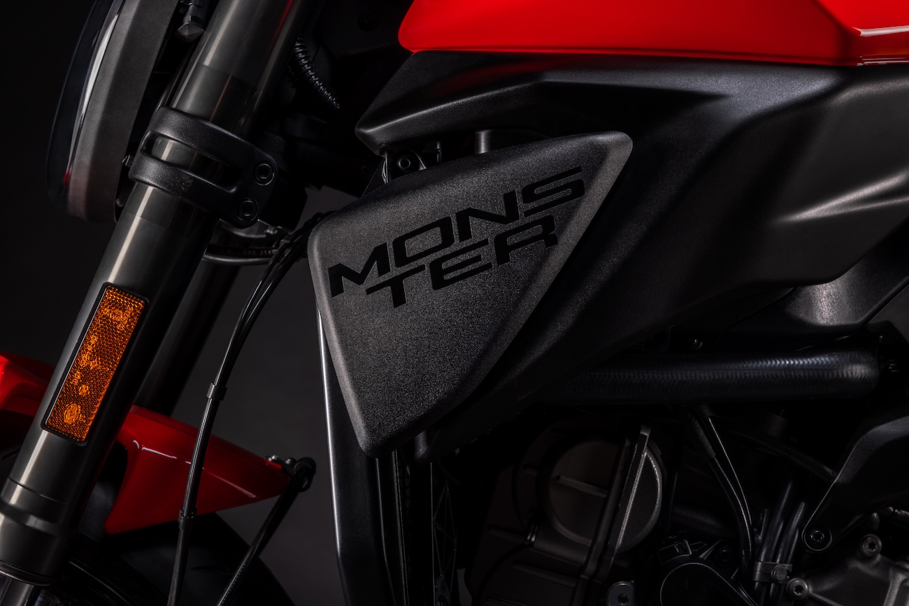 Nowy Monster został zaprojektowany od podstaw, łącząc lekkość i technologię z niepowtarzalną estetyką. Utrzymał styl pierwszego Monstera w nowoczesnym wydaniu. Bardziej opływowy, sportowy i kompaktowy, nowy Monster urzeka, przywracając cechy stylistyczne, które zawsze wyróżniały go spośród innych naked’ów: charakterystyczny reflektor, zbiornik paliwa, jednoczęściowe siedzenie i krótki, lekki tył.