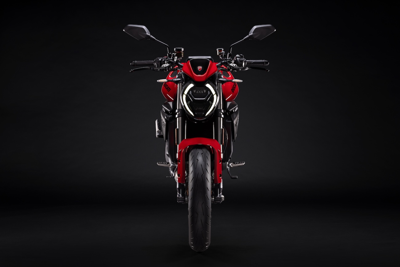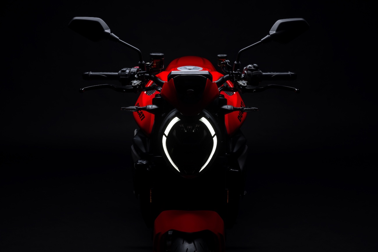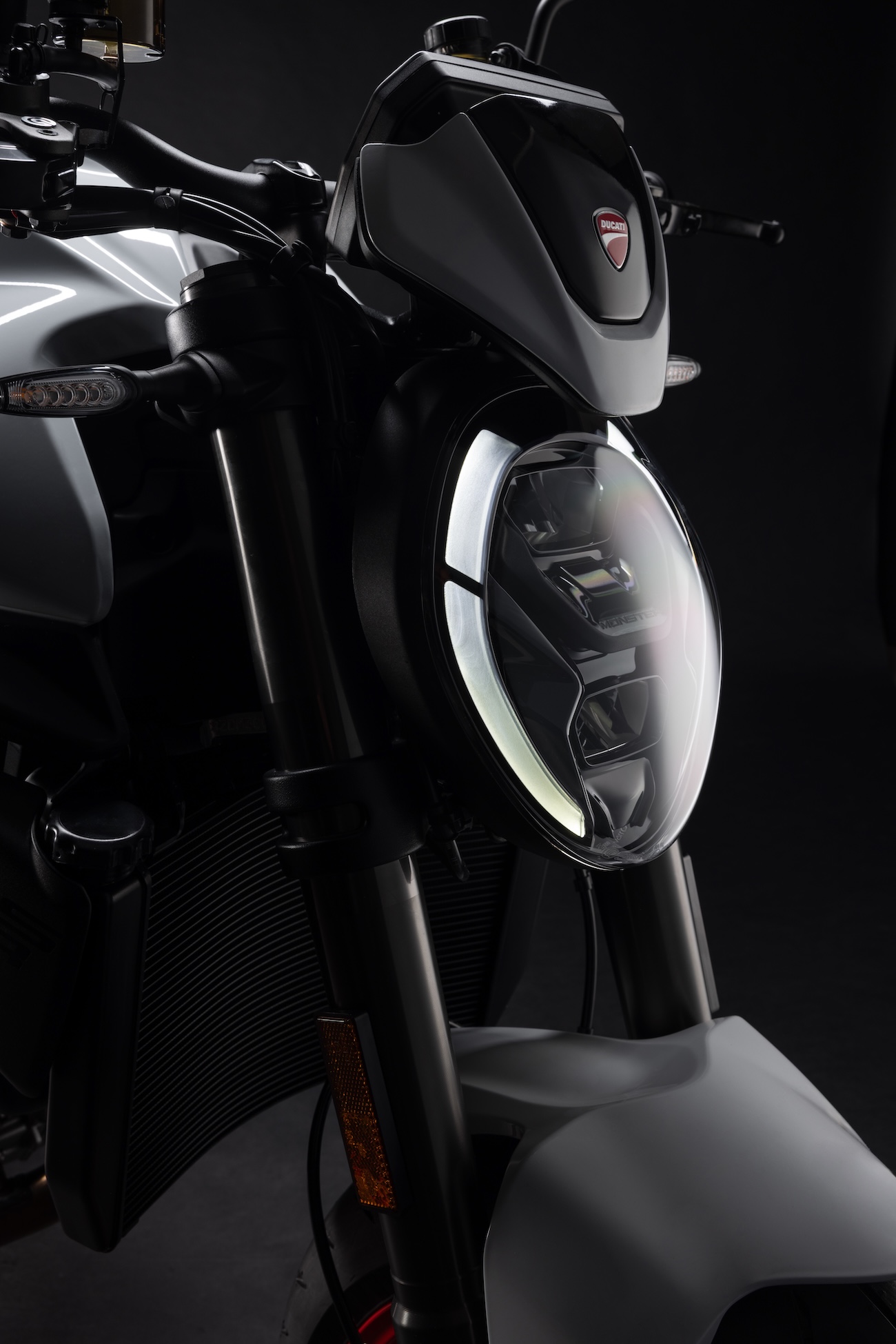 Przednia lampa, która w projektach motocykli stanowi jego „twarz”, jest w pełni diodowa, o nowoczesnym wyglądzie nawiązującym do różnych elementów stylistycznych gamy Ducati. Kształt podwójnego „C” to w istocie optyczny symbol łączący motocykle typu naked Ducati, który jest tu jeszcze bardziej wyrazisty.