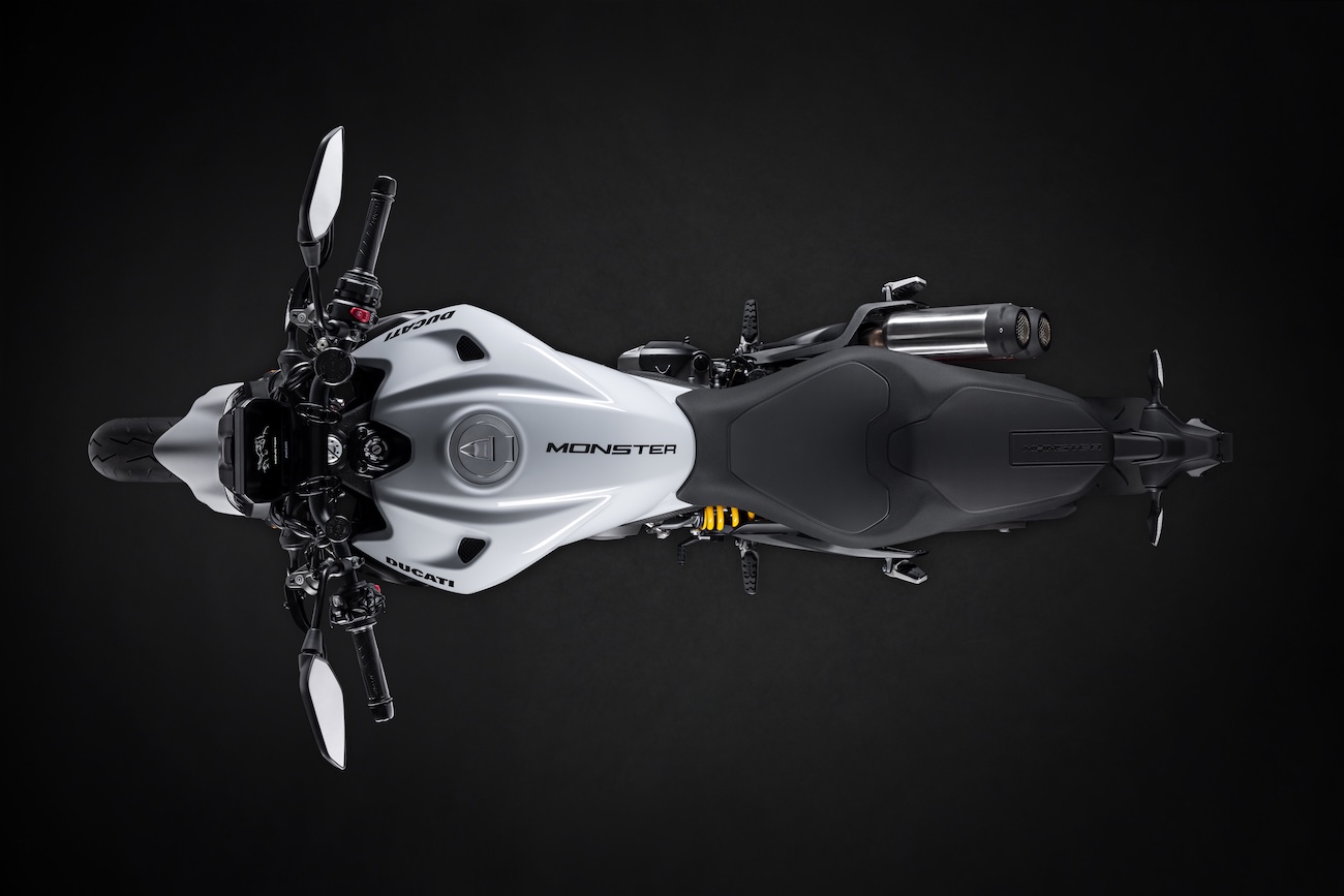Motocykliści docenią jeszcze niższe siedzenie (815 mm, z możliwością obniżenia do 775 mm przy zastosowaniu akcesoryjnej niskiej kanapy i zestawu obniżającego zawieszenie), które dodatkowo jest węższe niż w poprzednim modelu, co ułatwia stabilne oparcie stóp na nawierzchni. Wyższa i przesunięta do przodu kierownica zwiększa poczucie kontroli podczas sportowej jazdy, a jednocześnie zapewnia wygodną pozycję, gdy jazda staje się bardziej relaksująca. Boczne panele z powierzchnią antypoślizgową wspierają kierowcę podczas hamowania. Jednocześnie stanowią element stylistyczny upamiętniający historię Monstera.