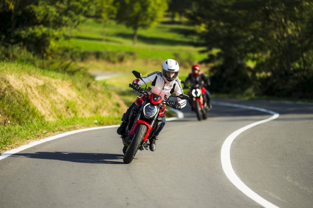 Intuicyjny i przyjemny w prowadzeniu Monster odmienia swoje oblicze jednym naciśnięciem przycisku, poprzez wybór jednego z czterech trybów jazdy. Kierowcy o sportowym zacięciu docenią dynamikę silnika w trybie Sport, gdzie bezpieczeństwo zapewnia elektroniczny pakiet obejmujący DTC (Ducati Traction Control), DWC (Ducati Wheelie Control), EBC (Engine Brake Control) oraz Cornering ABS. Jednocześnie mniej doświadczeni kierowcy i miłośnicy jazdy po mieście łatwiej i szybciej oswoją się z nakedem Ducati dzięki trybom jazdy Road i Urban.