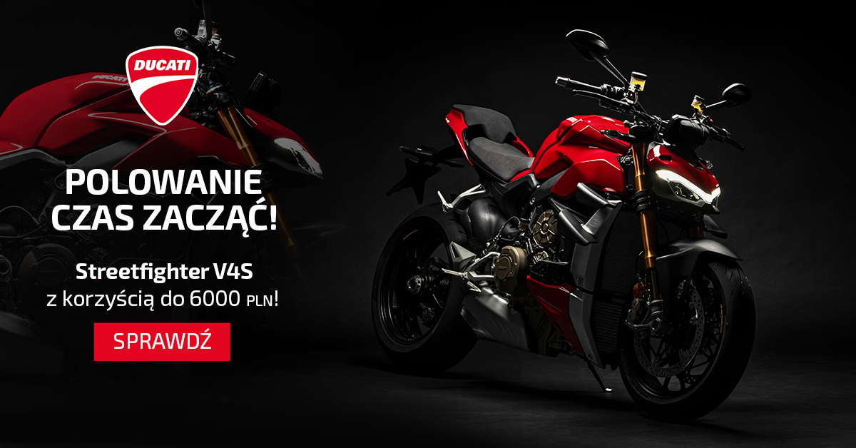 Motocykliści, którzy szukają najmocniejszych wrażeń podczas jazdy, powinni skierować wzrok w stronę tegorocznej nowości, czyli Ducati Streetfighter V4 S. “Sucha” masa 178 kilogramów, aerodynamiczne skrzydła zapewniające optymalny docisk do podłoża i silnik o mocy 208 KM – oto cechy prawdziwego ulicznego wojownika. W posezonowych promocjach Ducati Streetfighter V4 S dostępne jest aż o 6000 zł taniej!