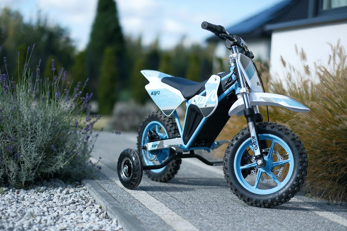 Co bardzo ważne, ten mały motocykl waży zaledwie 30 kg. Uruchamianie przyciskiem i brak sprzęgła sprawiają, że model sprzyja stawianiu pierwszych kroków. Dla bezpieczeństwa KAYO eKMB posiada dwa zmienne tryby jazdy blokujące prędkość maksymalną. Opcjonalnie, do tego modelu motocykla, można dokupić kółka boczne – to ułatwi jazdę nawet najmniejszym dzieciom.