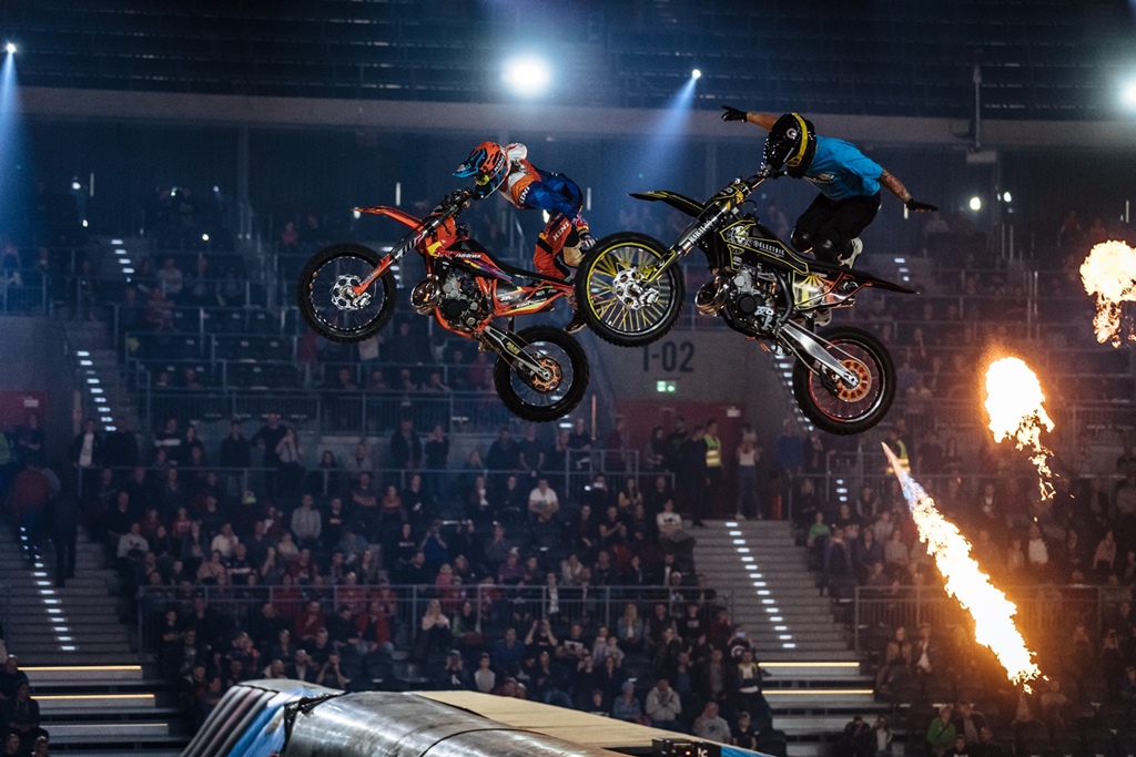 Oba zespoły jednak dały z siebie wszystko, prezentując na motocyklach, rowerach, quadach, hulajnogach i rolkach swoje najlepsze tricki. Każdy kolejny przejazd coraz bardziej podnosił poziom adrenaliny i dostarczał wielu emocji. Były podwójne salta w tył, salta w przód, salta z kombinacjami, widowiskowe whipy oraz klasyczne old schoolowe ewolucje. Dopełnieniem całości było salto w tył pojazdem buggy w wykonaniu Gerharda Mayra.