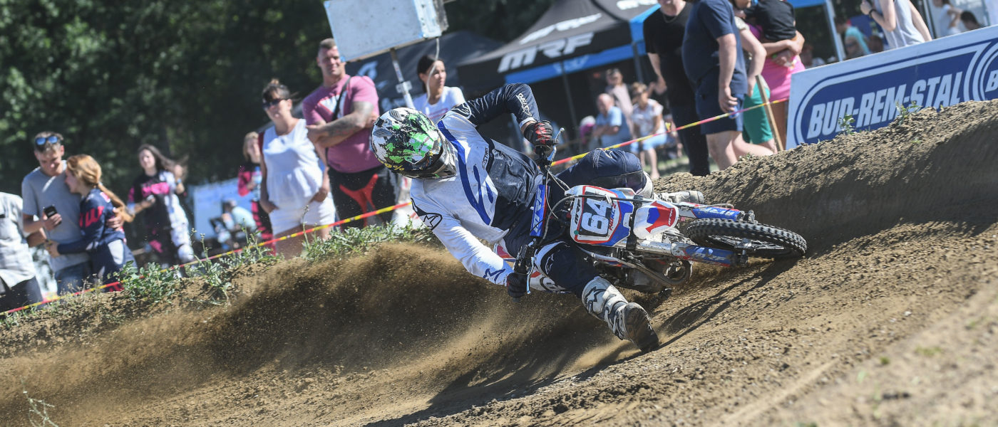 Trzynaście minut plus dwa okrążenia to dystans młodzieży w klasie Stock 125. To już zawodnicy z całkiem sporym doświadczeniem, czołówka była niezagrożona, ale największa batalia rozgrywała się w środku stawki. Wygrani to trójka reprezentantów MX Otopit Toruń: Oliwier Kaźmierski, Oskar Tuszyński, Mikołaj Hubner.