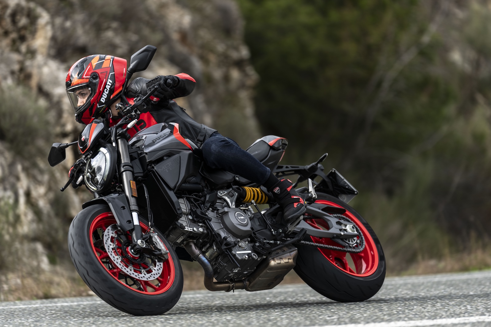 Łatwość prowadzenia Monstera jest wspierana przez pozycję za kierownicą, zaprojektowaną tak, aby motocyklista czuł się komfortowo w każdej sytuacji. Wysokość siedzenia wynosząca zaledwie 815 mm pozwala na swobodne oparcie stóp o podłoże, a umiejscowienie podnóżków i kierownicy zwiększa poczucie kontroli podczas sportowej jazdy, a jednocześnie zapewnia wygodę podczas bardziej swobodnego użytkowania.