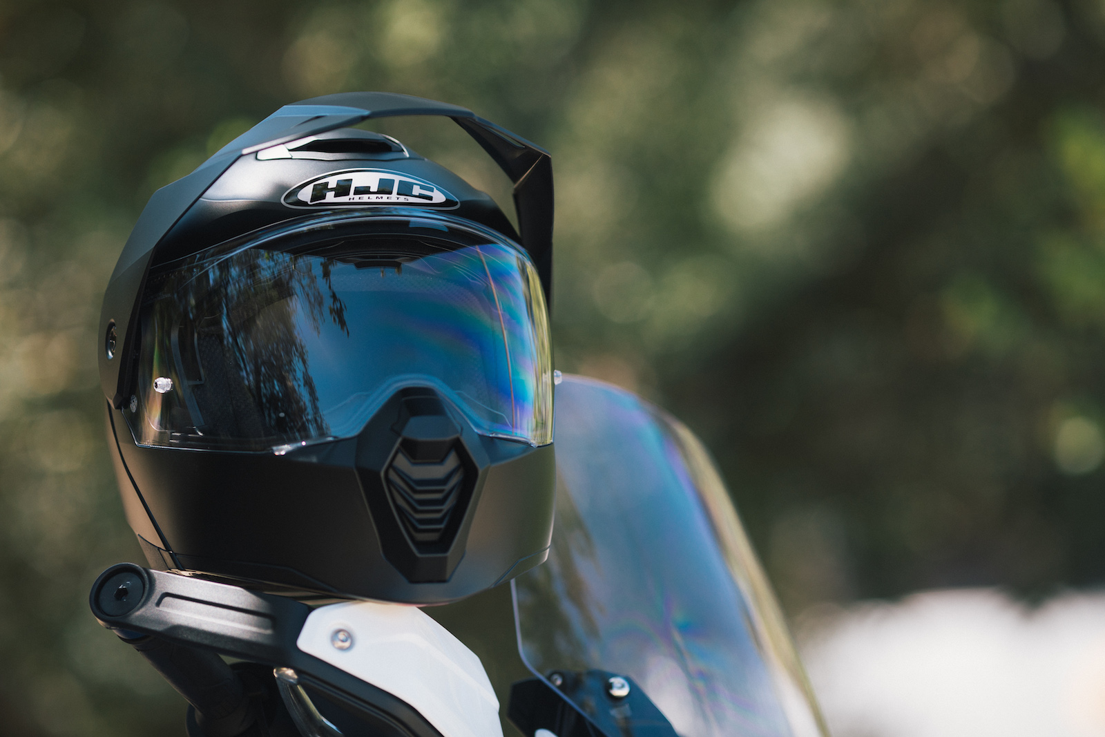 Kask C80 Dual Sport Modular jest absolutnie wyjątkowy. Nowy model HJC daje wiele opcji konfiguracji – ma otwieraną szczękę, blendę i demontowane daszek oraz szybę wizjera. Zaprojektowano go zarówno do jazdy terenowej, jak i szosowej.