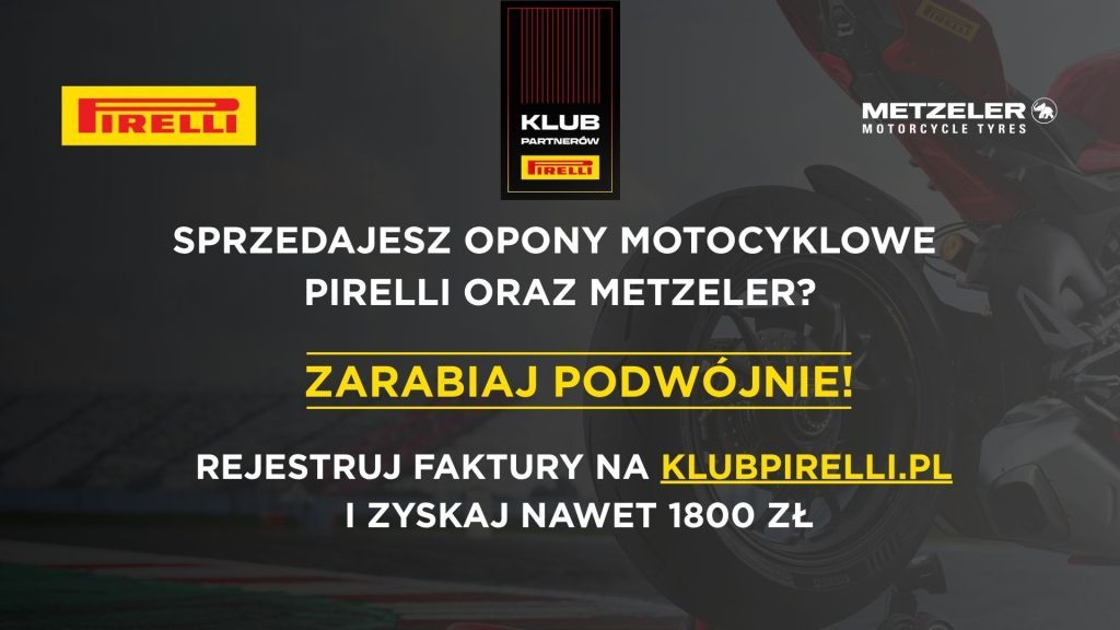 Klub Partnerów Pirelli to program przeznaczony zarówno dla właścicieli jak i pracowników serwisów motocyklowych, którzy realnie zyskują na dołączeniu do Klubu. W jaki sposób? Za zakup wybranych opon motocyklowych Pirelli i Metzeler u autoryzowanych dystrybutorów, takich jak Olek Motocykle, Intercars i Latex, przysługuje premia wynosząca do 30 zł za sztukę. Programem objęte są zakupy realizowane już od 1 czerwca 2025 roku.