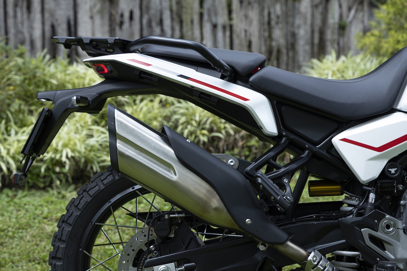 Zaawansowany układ hamulcowy z ABS (z możliwością dezaktywacji tylnego koła w trybie off-road) oraz promieniowy zacisk hamulcowy z przodu zapewniają precyzyjne, mocne i przewidywalne hamowanie w każdych warunkach.
