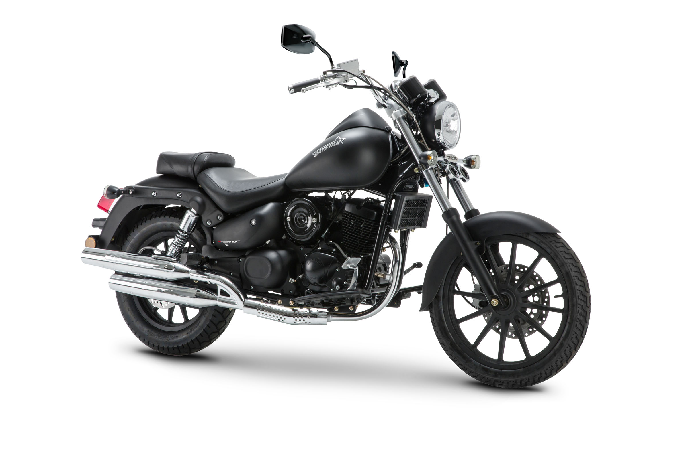 Dobre hamulce, komfortowe zawieszenie, a przede wszystkim dynamiczny napęd, pozwalają na sprawną i bardzo przyjemną jazdę. RMT Daystar nie tylko na pierwszy rzut oka sprawia wrażenie solidnej maszyny. Spore jak na tę klasę gabaryty pozwalają nawet większym osobom na wygodną jazdę, a duży rozstaw osi wspiera poczucie stabilności podczas jazdy w każdych warunkach. Czarny matowy lakier, w połączeniu z dużą ilością dobrej jakości chromu i dopracowanymi detalami, tworzą spójną estetykę rasowego cruisera, a podwójny wydech i okrągła puszka filtra powietrza dodają charakteru maszynie. Motocykle RMT Daystar to sprawdzona na całym świecie, dobra koreańska technologia Dealim.