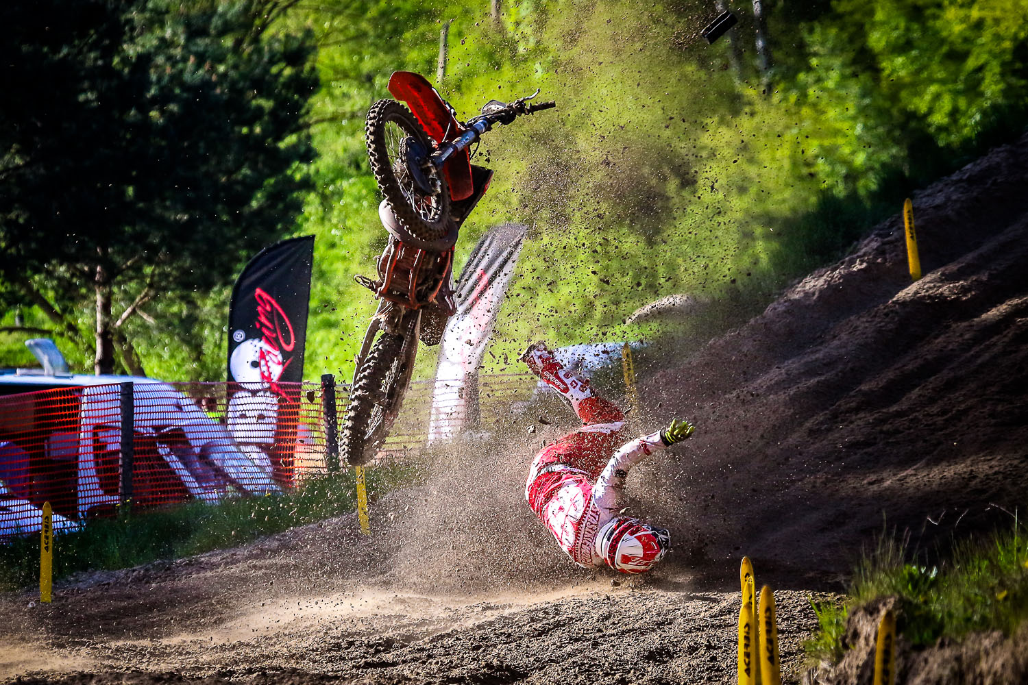 W drugim biegu natomiast po upadku na drugim zakręcie i ostrej szarży z końca stawki, Szymon przedzierając się do pierwszej dziesiątki zaliczył potężną wysiadkę przez kierownicę na największym skoku. Efektem niebezpiecznego wypadku jest połamana ręka, ale wszyscy trzymamy kciuki za jego szybki powrót na motocykl.