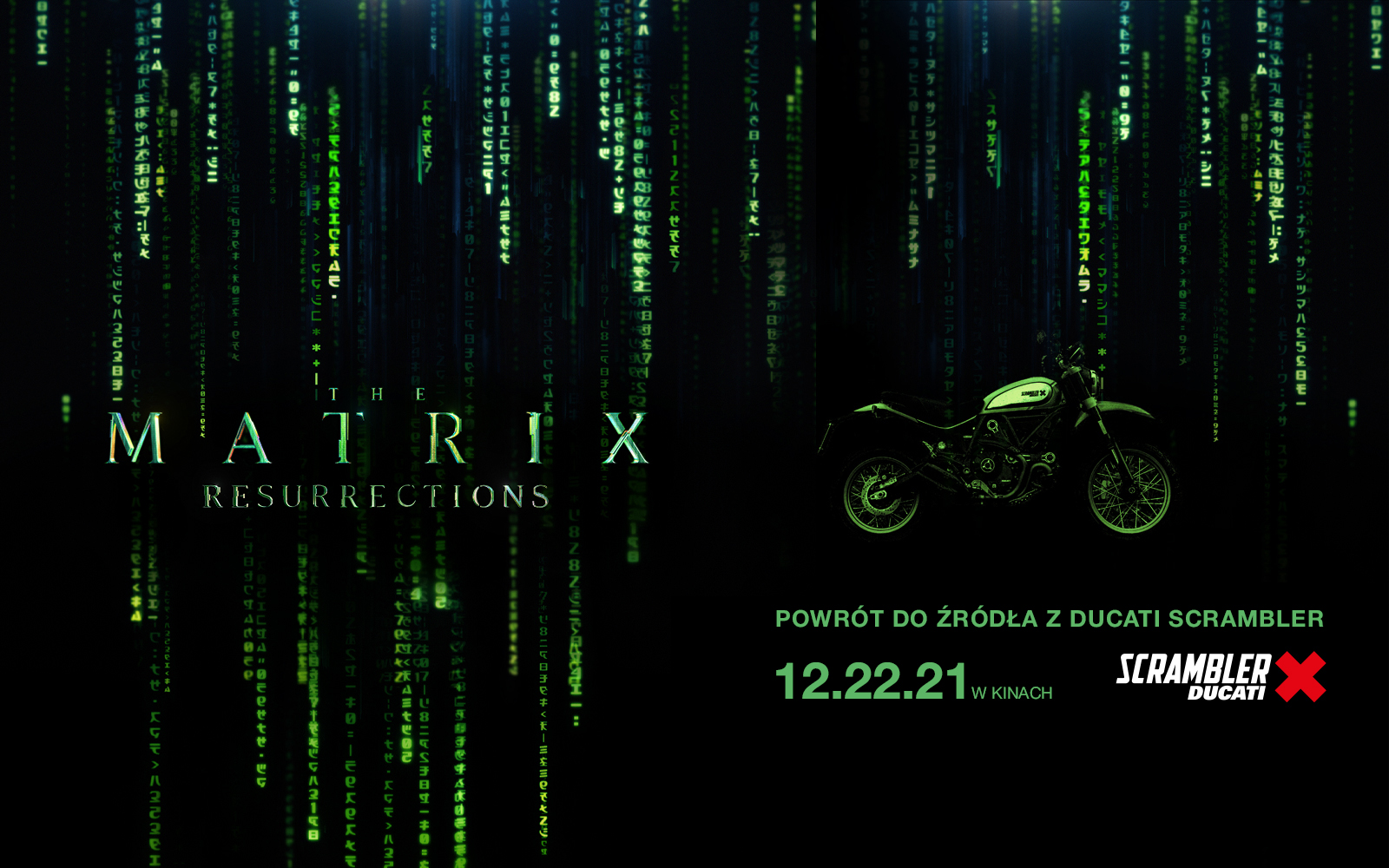 W nowym filmie z serii Matrix występuje zmodyfikowany Ducati Scrambler. Ponownie poprowadzi go Trinity, a jej pasażerem jest nikt inny jak Neo, ubrany w swój charakterystyczny, długi płaszcz.