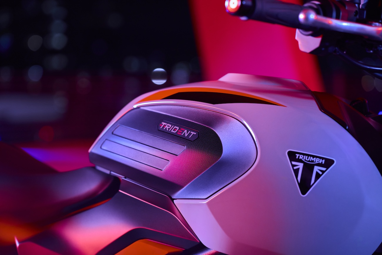 Sercem Tridenta jest responsywny, trzycylindrowy silnik o pojemności 798 cm³, mocy 115 KM i 84 Nm maksymalnego momentu obrotowego dostępnego przy 8 500 obr./min. Zapewnia on ekscytujące osiągi w realnych warunkach drogowych. Potrójna przepustnica gwarantuje błyskawiczną reakcję, a równomiernie rozwijany moment obrotowy w średnim zakresie obrotów i porywająca moc maksymalna sprawiają, że każda jazda staje się uzależniająca. Towarzyszy temu niepowtarzalne brzmienie trzycylindrowej jednostki Triumpha, wydobywające się z uniesionego, sportowego tłumika – dźwięk, który natychmiast przyspiesza bicie serca.