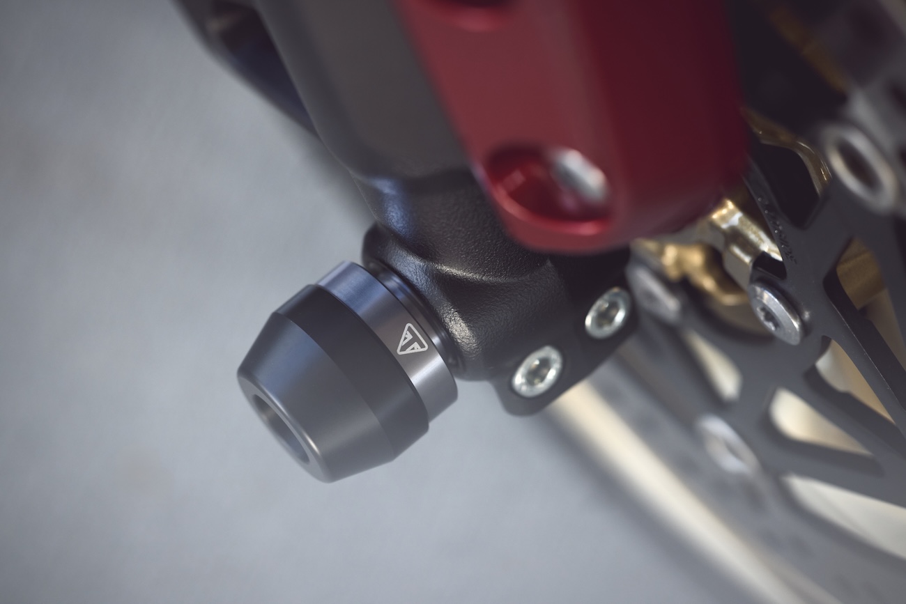 Kompaktowa, muskularna sylwetka Tridenta 800, podkreślona minimalistycznym designem i charakterystyczną dla Triumpha dbałością o detale, nadaje mu wyrazisty, odważny charakter. To motocykl, który nie tylko przyciąga wzrok – on prowokuje, by wsiąść i po prostu jechać.