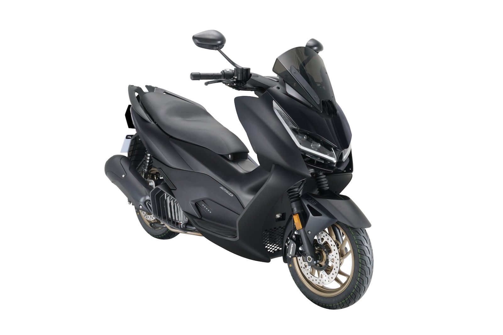 Skuter wyposażono w przydymioną szybę, regulowaną elektrycznie w zakresie 170 mm, sterowaną z podświetlanych przycisków na lewym przełączniku.