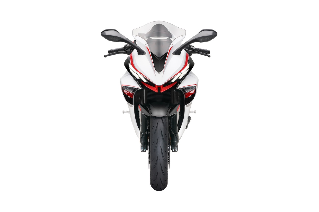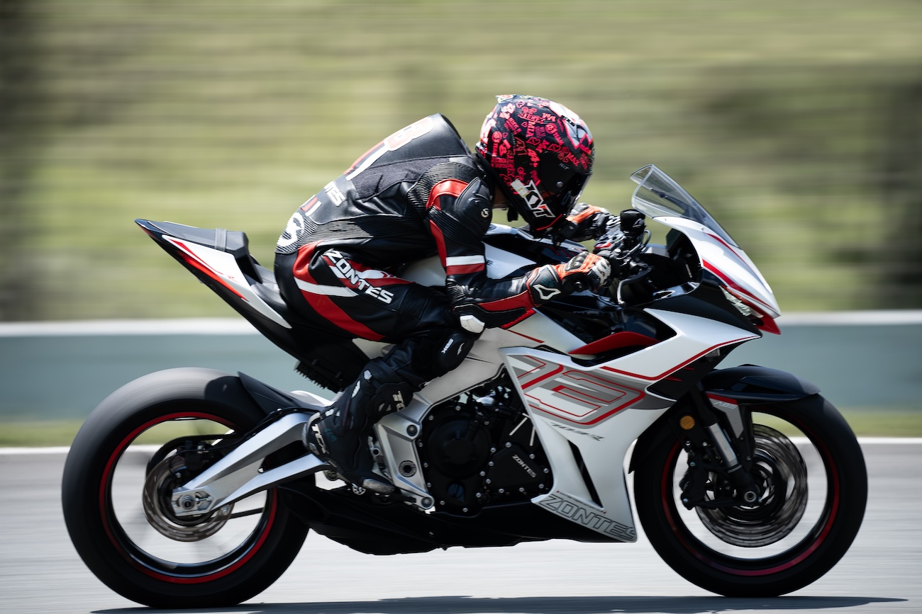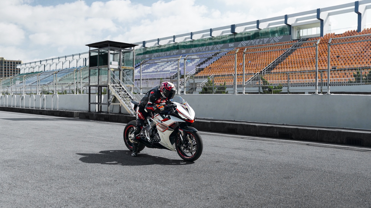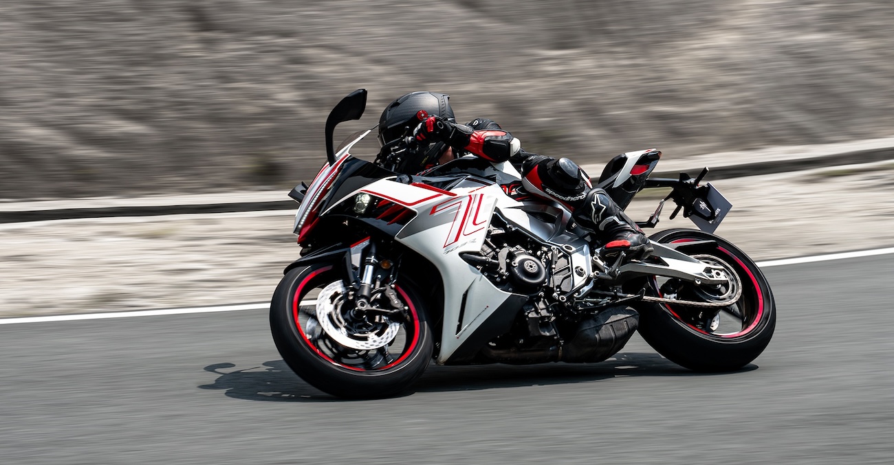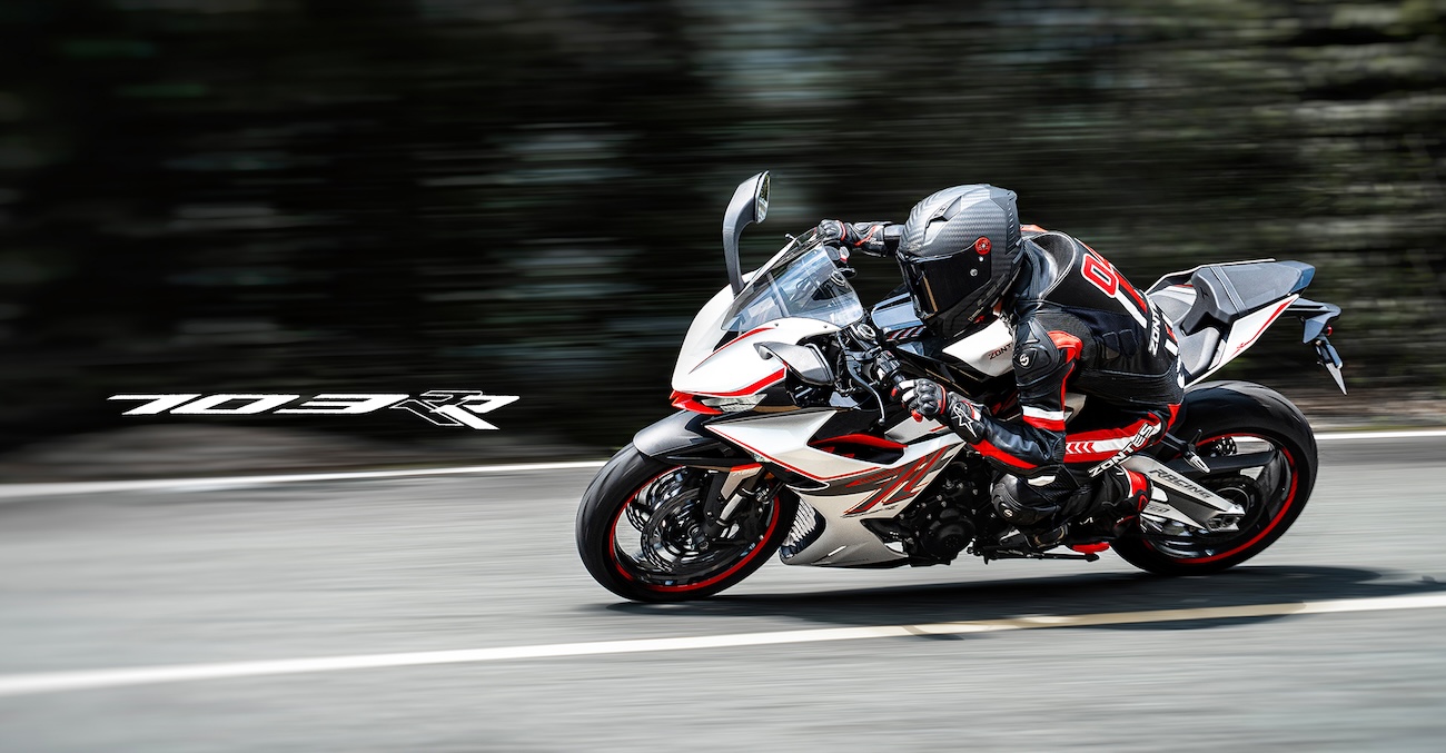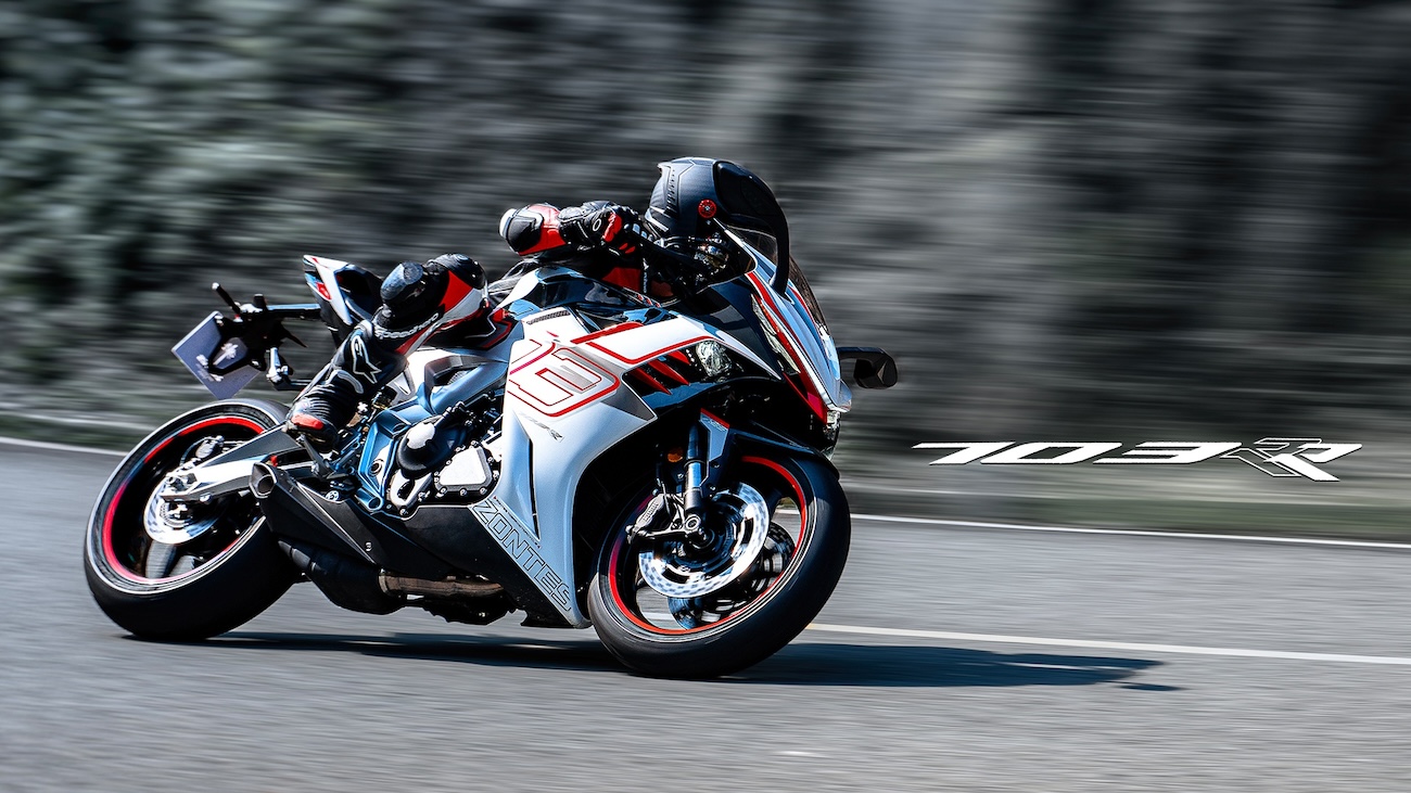 Każdy element 703 RR podporządkowano aerodynamice i sportowym emocjom. Ostre linie owiewek, smukły przód oraz wyraźnie zarysowany, dynamiczny tył budują sylwetkę pełną charakteru. Motocykl dostępny jest w dwóch wariantach kolorystycznych: świeżym srebrno-niebieskim oraz energetycznym biało-czerwonym. Oba malowania podkreślają indywidualność i sprawiają, że trudno przejść obok niego obojętnie.