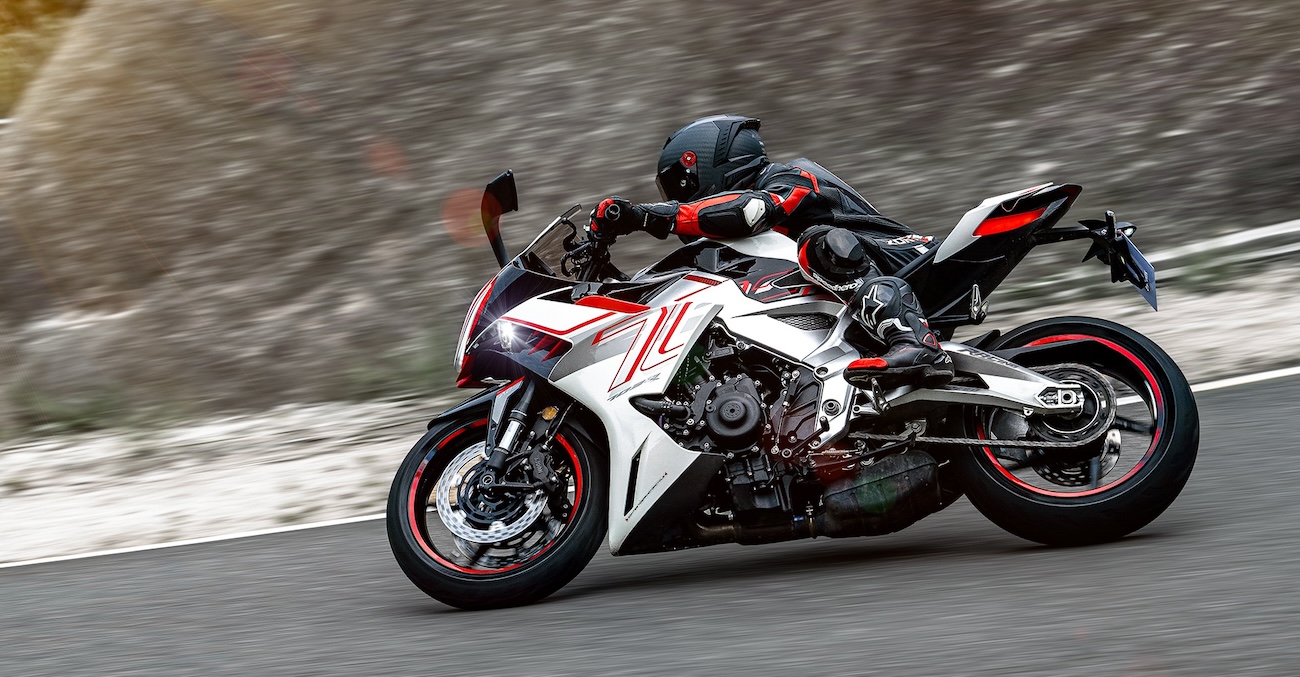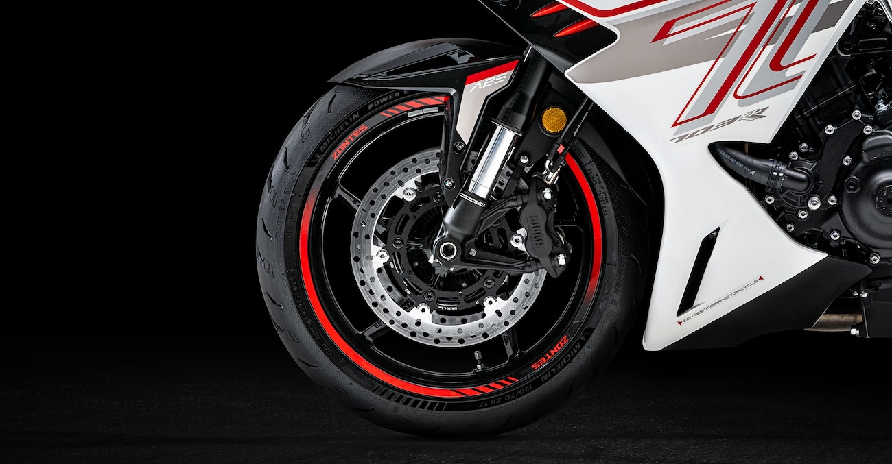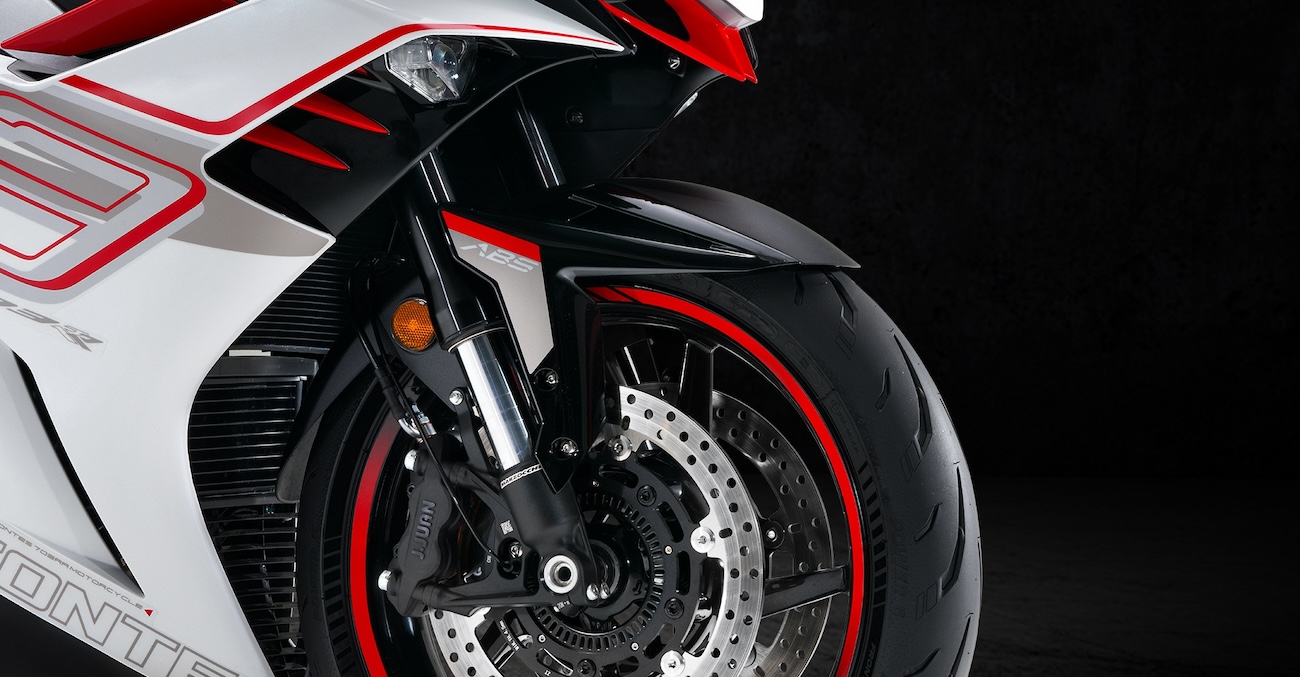 Motocykl wyposażono w 17-calowe obręcze z oponami klasy premium Michelin GP2 w rozmiarach 120/70 (przód) i 180/55 (tył). W połączeniu z regulowanym zawieszeniem Marzocchi zapewniają one stabilność, precyzyjne prowadzenie i pewność w złożeniach, nawet przy dynamicznej jeździe. Układ hamulcowy marki J.Juan, wspierany przez dwukanałowy ABS, gwarantuje skuteczność i bezpieczeństwo w każdych warunkach.