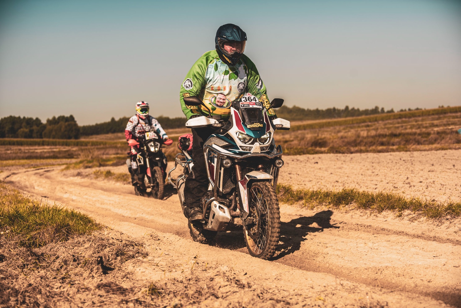 Nie brak oczywiście i plusów. Pierwszym jest gigantyczna satysfakcja płynąca z tego, że tak ciężką maszyną jesteście w stanie poradzić sobie w głębokim błocie czy piachu. Wielki motocykl adventure staje się misiem, którym otwieracie oczy niedowiarkom 🙂 Kolejny plus to obrzydliwa przyjemność z jazdy wciąż w offie, ale po nieco twardszych nawierzchniach. Doskonale bawiłem się nie tylko na dojazdówkach, ale też na odcinkach specjalnych z przewagą szutrów czy na moim ulubionym, na trawiastych mazurskich wzgórzach w okolicy wsi Cierzpięty. Tam wystarczyło mocniej odkręcić gaz, wskazać Afryce kierunek i delektować się tym, jak ta maszyna płynie nad podłożem, słuchając jednocześnie ryku wydechu. Oczywiście tu również należało zachować czujność związaną z gabarytami motocykla i uważnie obserwować trasę, bo przy braku koncentracji i nagłej zmianie nawierzchni skutki mogły być opłakane.