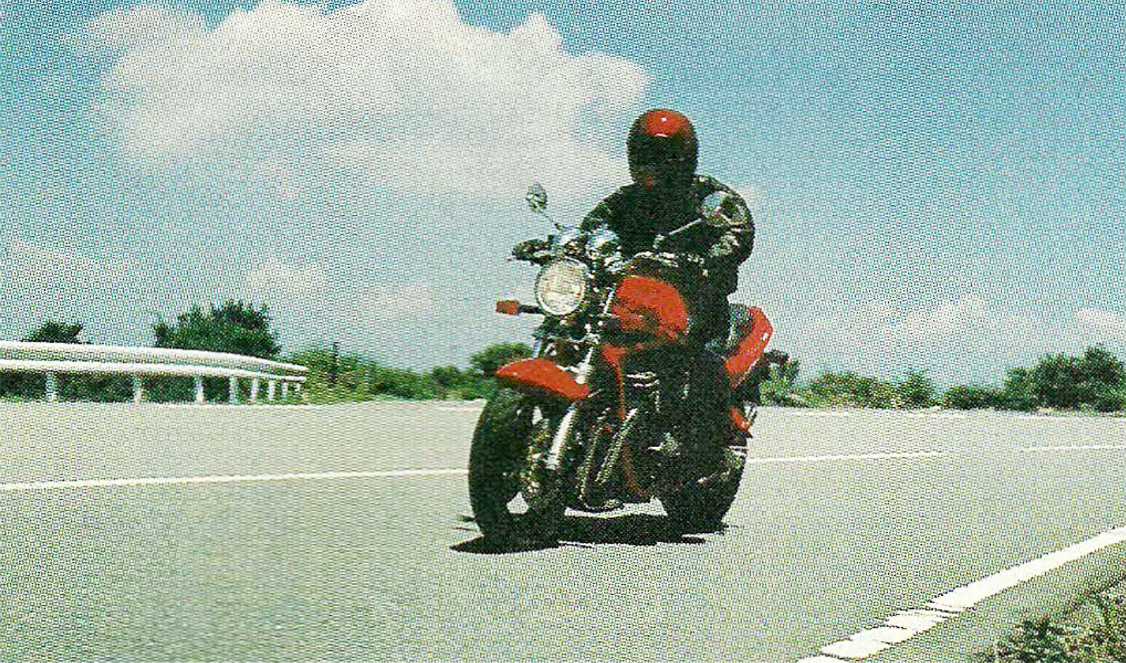 Olej ten schładzany jest potem w odpowiednio powiększonej chłodnicy. Dzięki temu sylwetki motocykla nie psują gumowe przewody tłoczące wodę z pompy do chłodnicy i z powrotem. Silnik jest bogato użebrowany, co pozwala na oddawanie ciepła przepływającemu powietrzu. Oczywiście w głowicy znajduje się szesnaście sterowanych dźwigienkami zaworów.