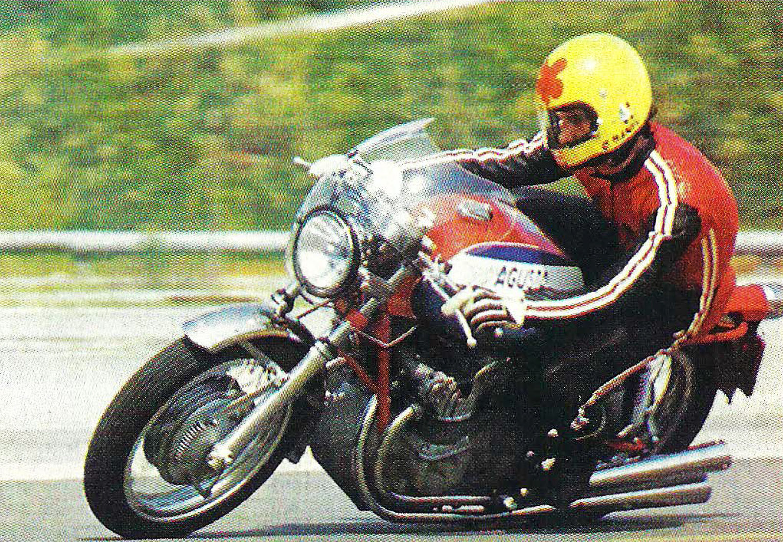 Ale wróćmy teraz do właściwego tematu, czyli do motocykli. Sportowo-turystyczne lub sportowe jednocylindrówki budowane w Anglii, w powojennym okresie świetności brytyjskiego motocykla, były z reguły konstrukcyjnymi rozwinięciami modeli znanych już przed wojną, np. AJS 7R był rozwinięciem przedwojennego modelu 7, produkowanym w latach 1948-1962. Jednocylindrowy silnik o pojemności 350 ccm z rozrządem OHC, zawieszony w podwójnej kołyskowej ramie, rozwijał moc 31 KM przy 7000 obr./min i mógł rozpędzić ważący 135 kg motocykl do prędkości 180 km/h.