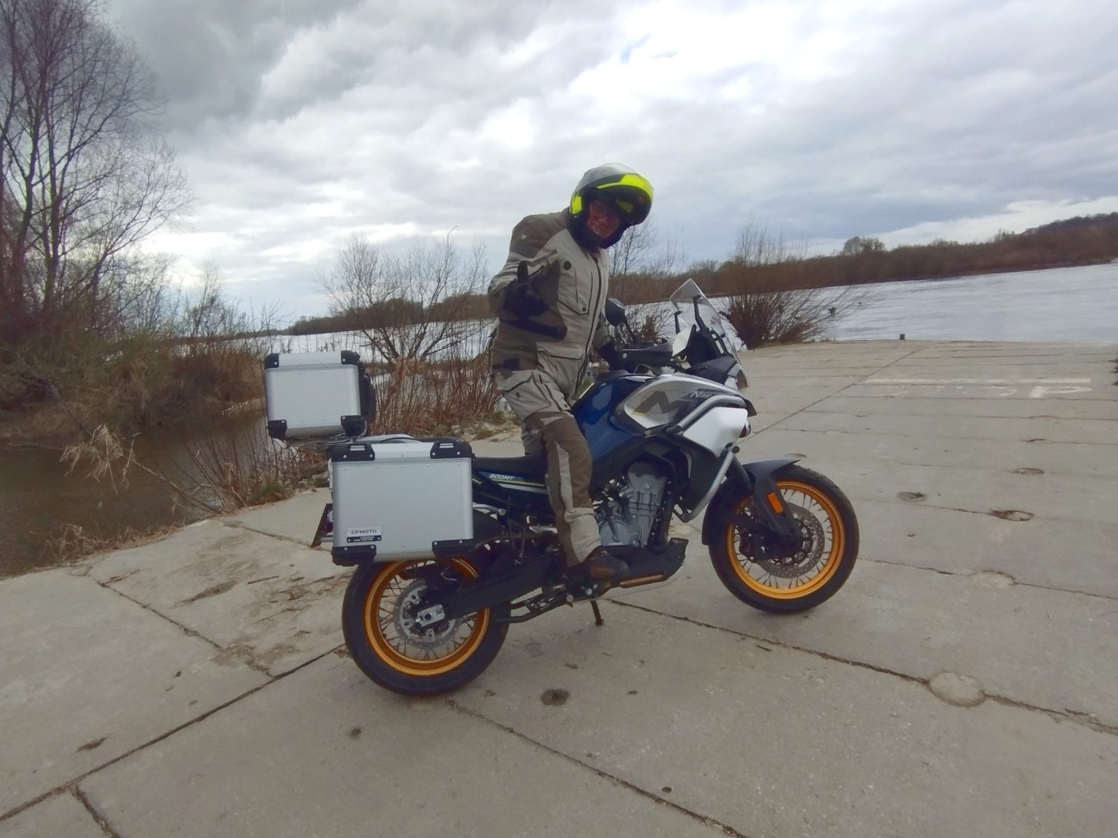 Przyznam, że głównie ze względu na niesprzyjająca aurę, jakoś nie miałem większej ochoty na badanie właściwości terenowych CFMoto. Na to też przyjdzie czas, bo kilka kilometrów po mokrym kazimierskim bruku, czy zjazd szutrem nad sama Wisłę (tu motocykl sprawdził się dzielnie), to jeszcze nie jest wyznacznik terenowości. Chociaż bez taplania się w błotach mogę stwierdzić, że to raczej maszyna szosowo-szutrowa, a nie off-roadowa. Wstępne przyglądanie się motocyklowi skończyło się dosyć szybko, bo trzeba było odstawić go na przegląd po 1000 km, ale relacji z poważniejszego testu spodziewajcie się już niebawem.