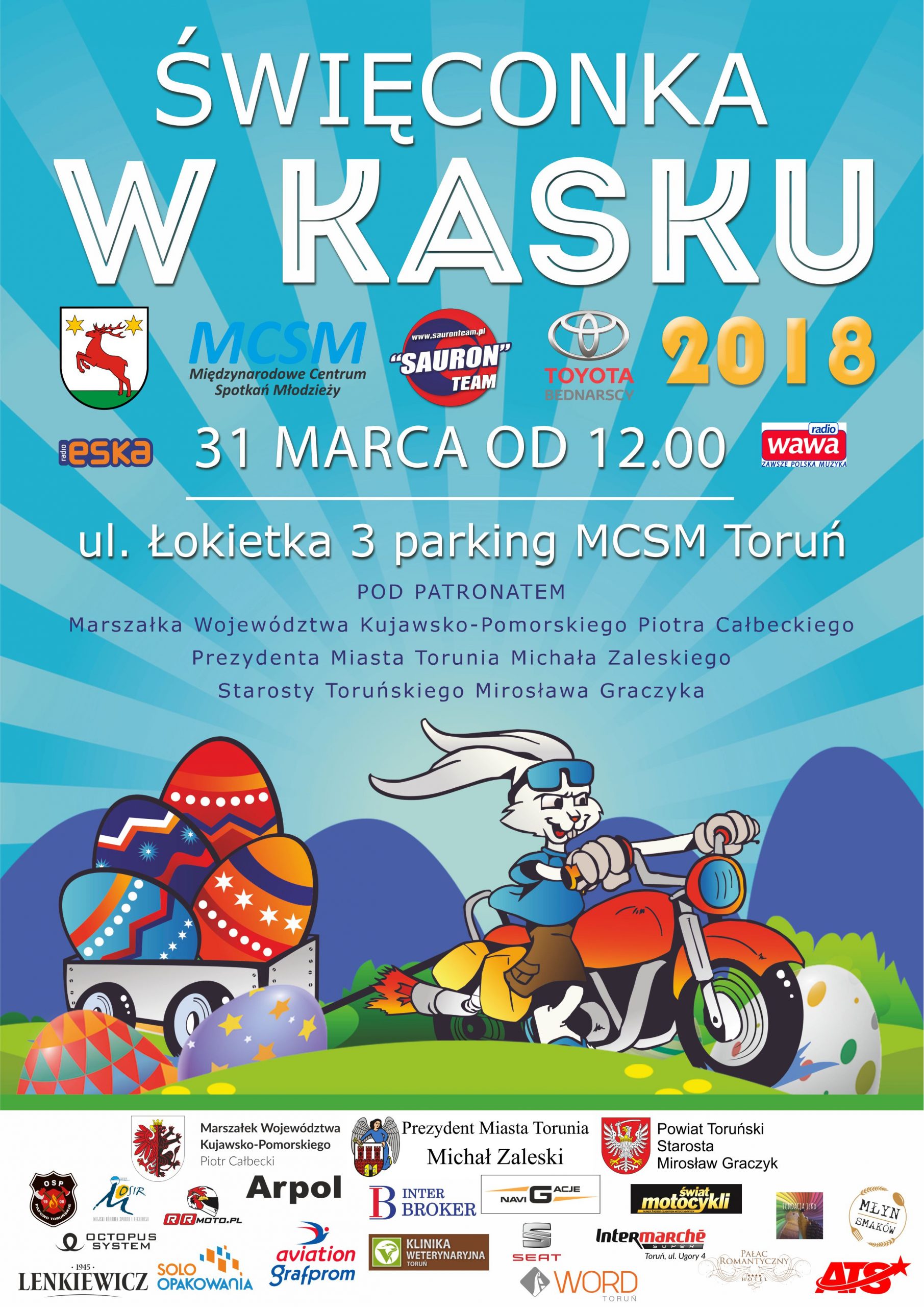 Święconka w Kasku to wydarzenie przyciągające coraz więcej uczestników. Nad wydarzeniem patronat honorowy objął Prezydent Miasta Torunia Michał Zaleski i Starosta Toruński Mirosław Graczyk, a Świat Motocykli objął patronat medialny!