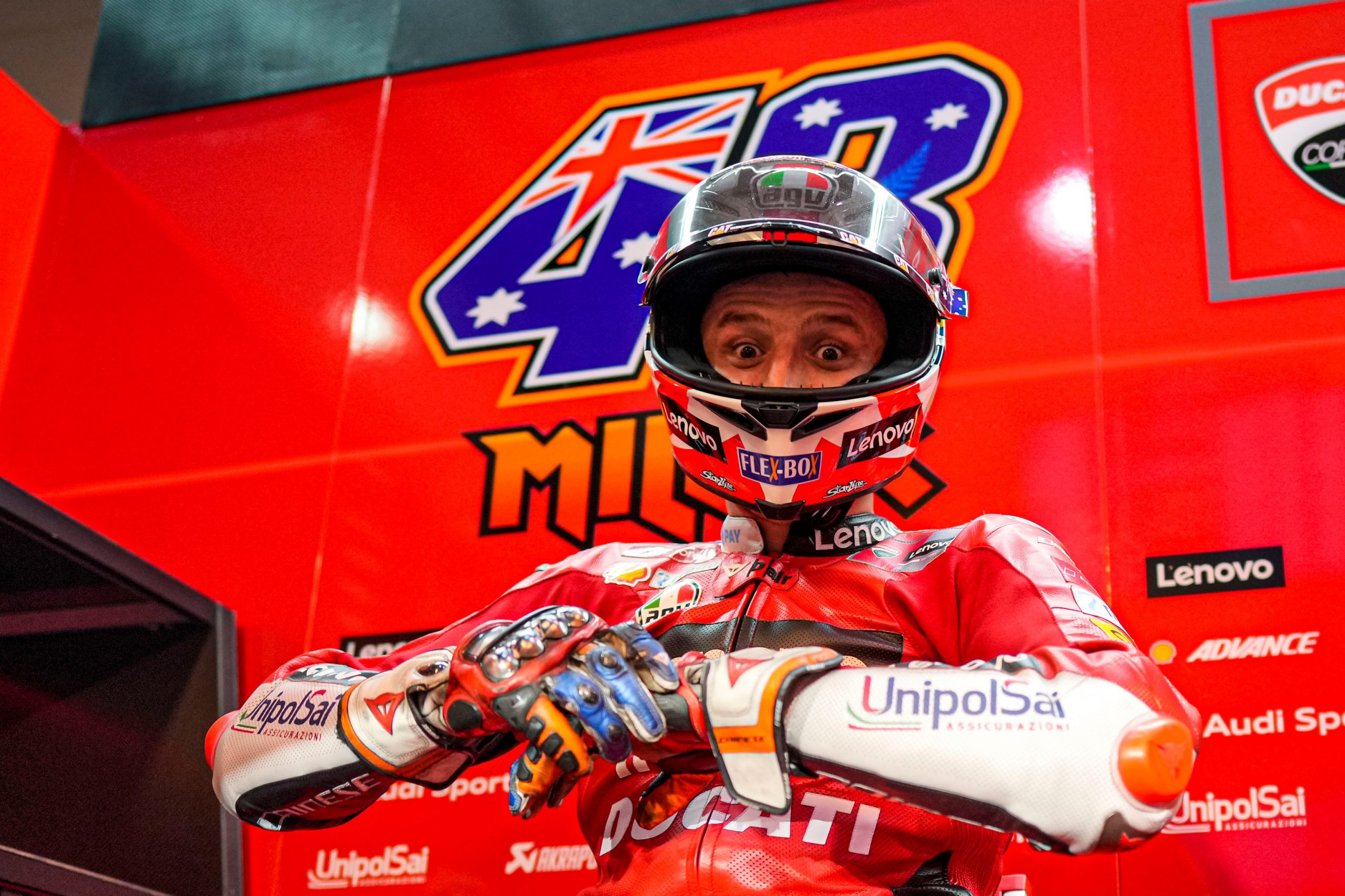 Chwilę później do akcji wkroczył… Andrea Iannone pisząc „TRILLER HELP CRASHCLOW” nawiązując do pseudonimu Millera – Thriller i zmieniając nieco brzmienie nazwiska Cala na CRASH-clow. Przy okazji Włoch, tak tylko wtącimy, że zdyskwalifikowany na 4 lata za doping, życzył wszystkim więcej uśmiechu i mniej napinki. Chyba jednak do maniakowej głowy po wielokrotnych operacjach plastycznych dotarło, że nie wydusiła z siebie nic mądrego i Andrea usunął wpis .