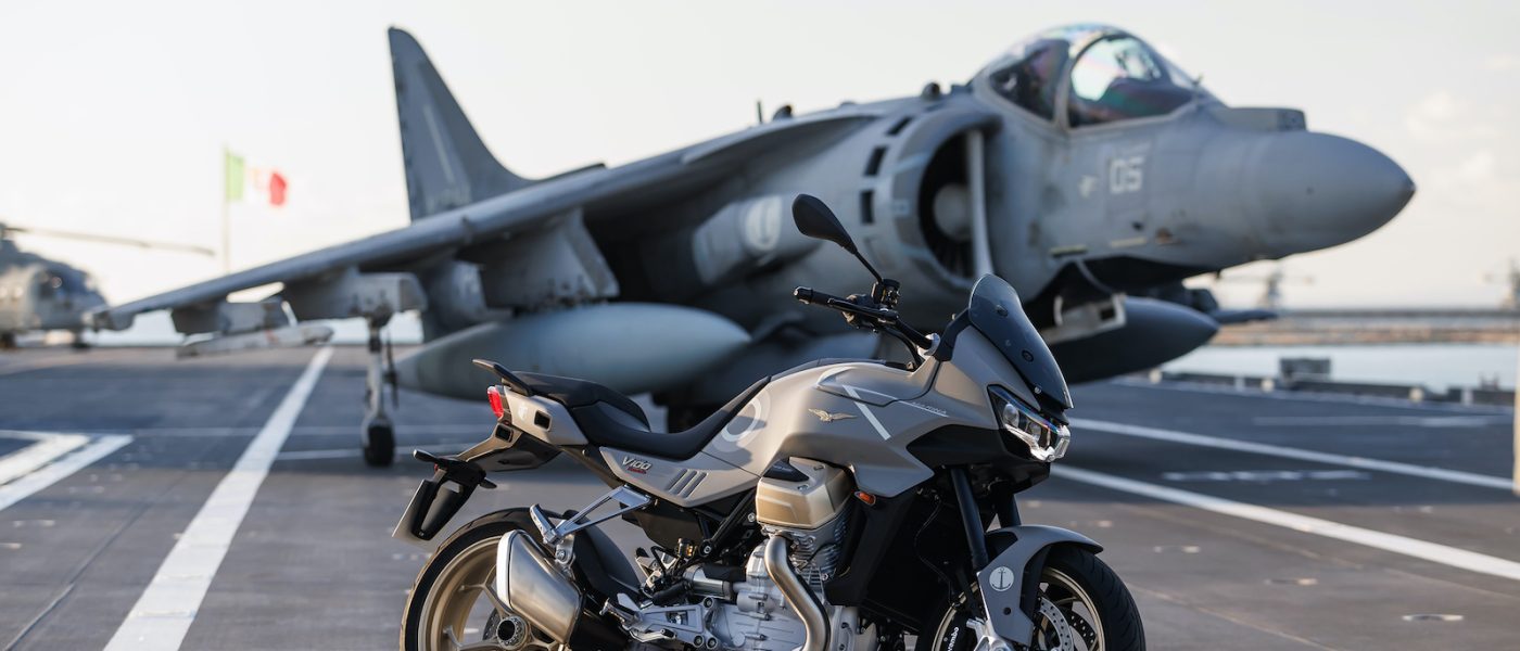 W wyjątkowych okolicznościach, bo na lotniskowcu Cavour, doszło kilka dni temu nie tylko do świętowania ponad stuletniej współpracy Moto Guzzi z włoską marynarką wojenną, ale też do prezentacji wyjątkowego motocykla. V100 Mandello Aviazione Navale to edycja limitowana najnowszego modelu z rodziny Moto Guzzi, który w nowej odsłonie robi wręcz odlotowe wrażenie.