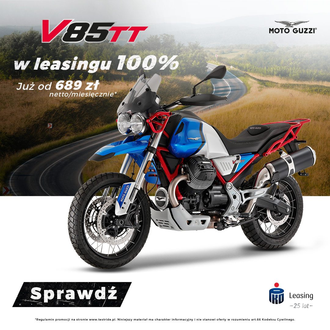 Promocyjny leasing 100% trwa do 31.08.2024 lub do wyczerpania zapasów. Regulamin promocji dostępny na stronie https://testride.pl/pl/moto-guzzi-v85-w-leasingu-100.