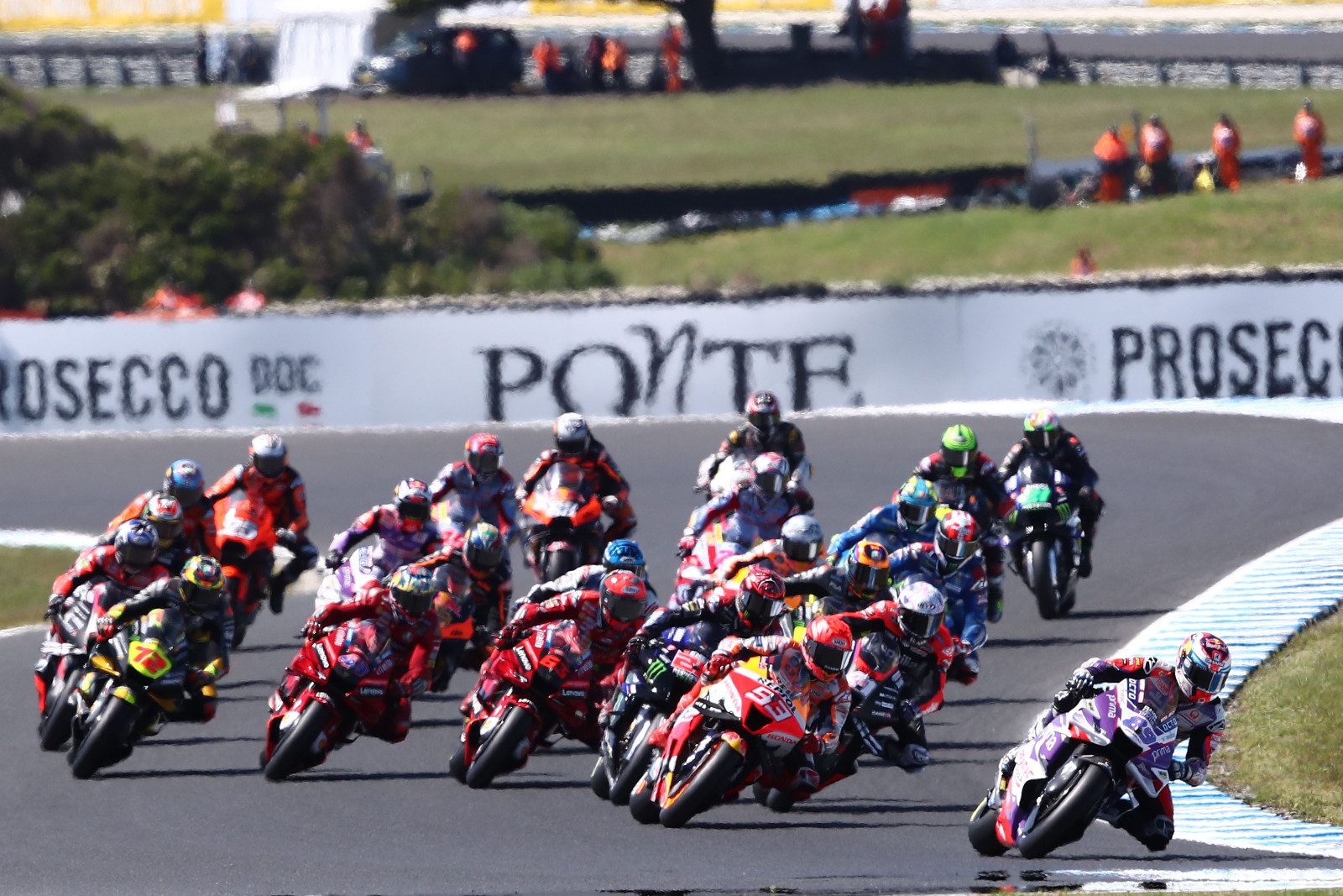 Liderzy mistrzostw wiedzieli, że wyścig na Wyspie Filipa może okazać się kluczowy w walce o tytuł, więc nikt nie odpuszczał. Jako pierwszy z walki w czołówce wykluczył się jednak Fabio Quartararo, który miał ogromne problemy na hamowaniu do czwartego zakrętu czwartego okrążenia. Francuz jakimś cudem nie wjechał w żadnego z rywali, ale spadł niemalże na sam koniec stawki. I choć jechał potem szybciej, niż zawodnicy w czołówce, to odrabianie strat szło mu niezwykle mozolnie.